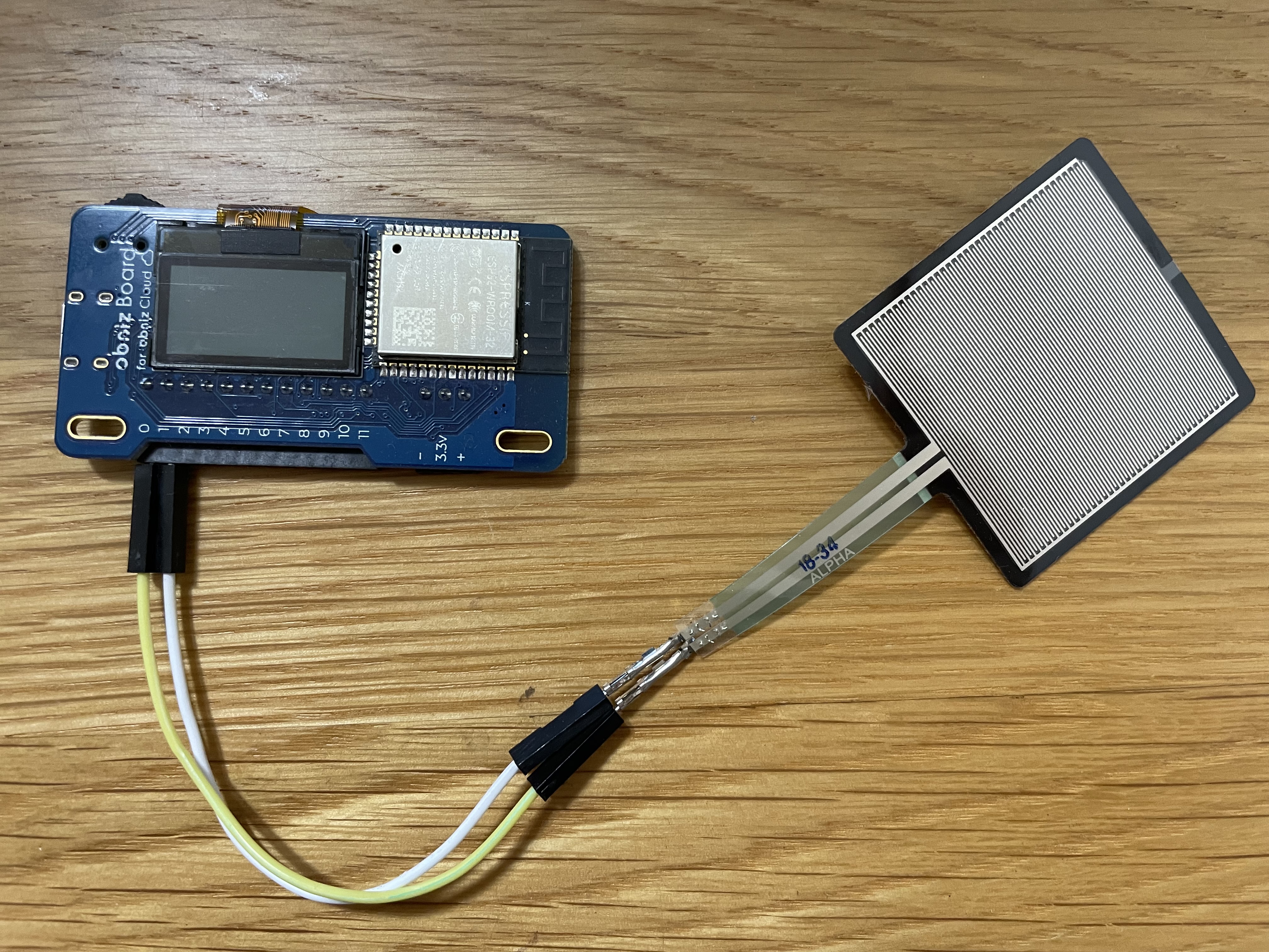 // 感圧センサーをobnizに接続