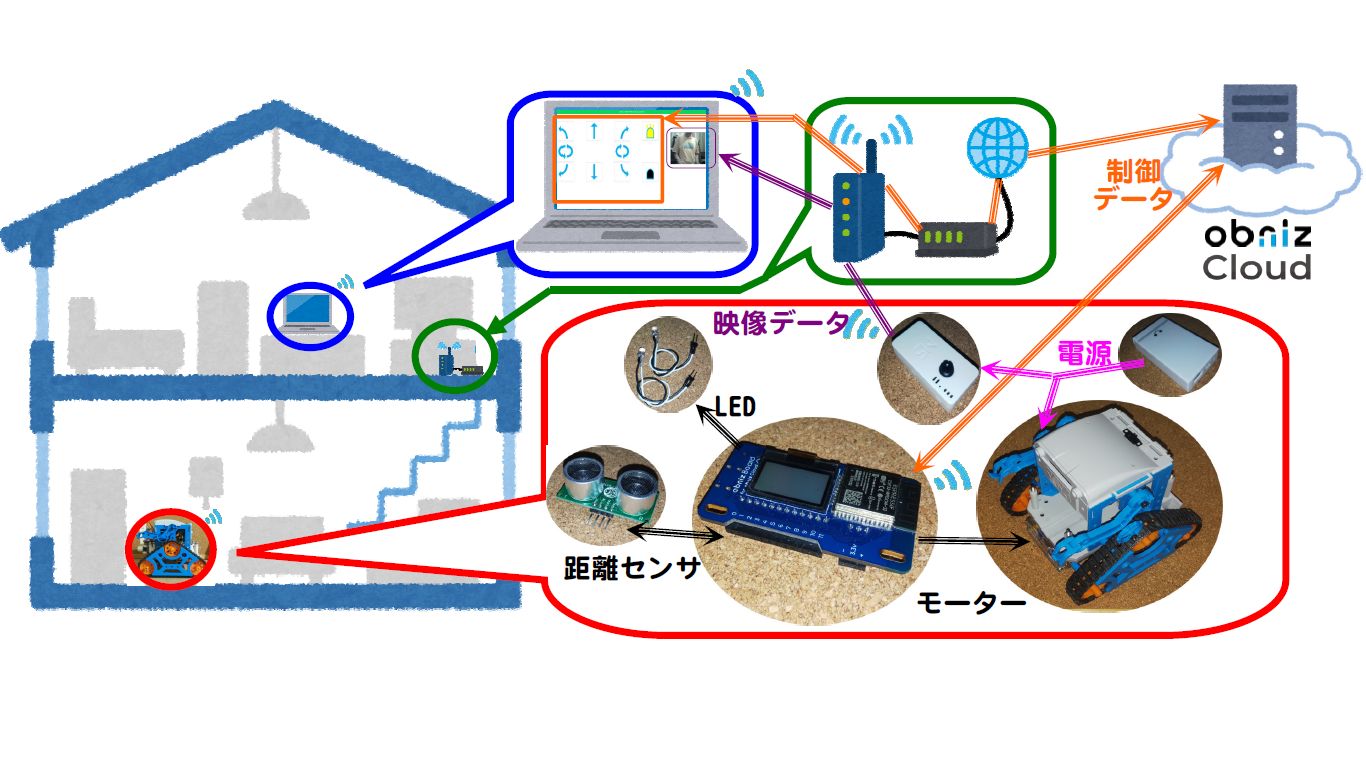 今回はまず、obniz を使ってカメラ画像を見ながらロボットの遠隔操作ができるところを目指しました。