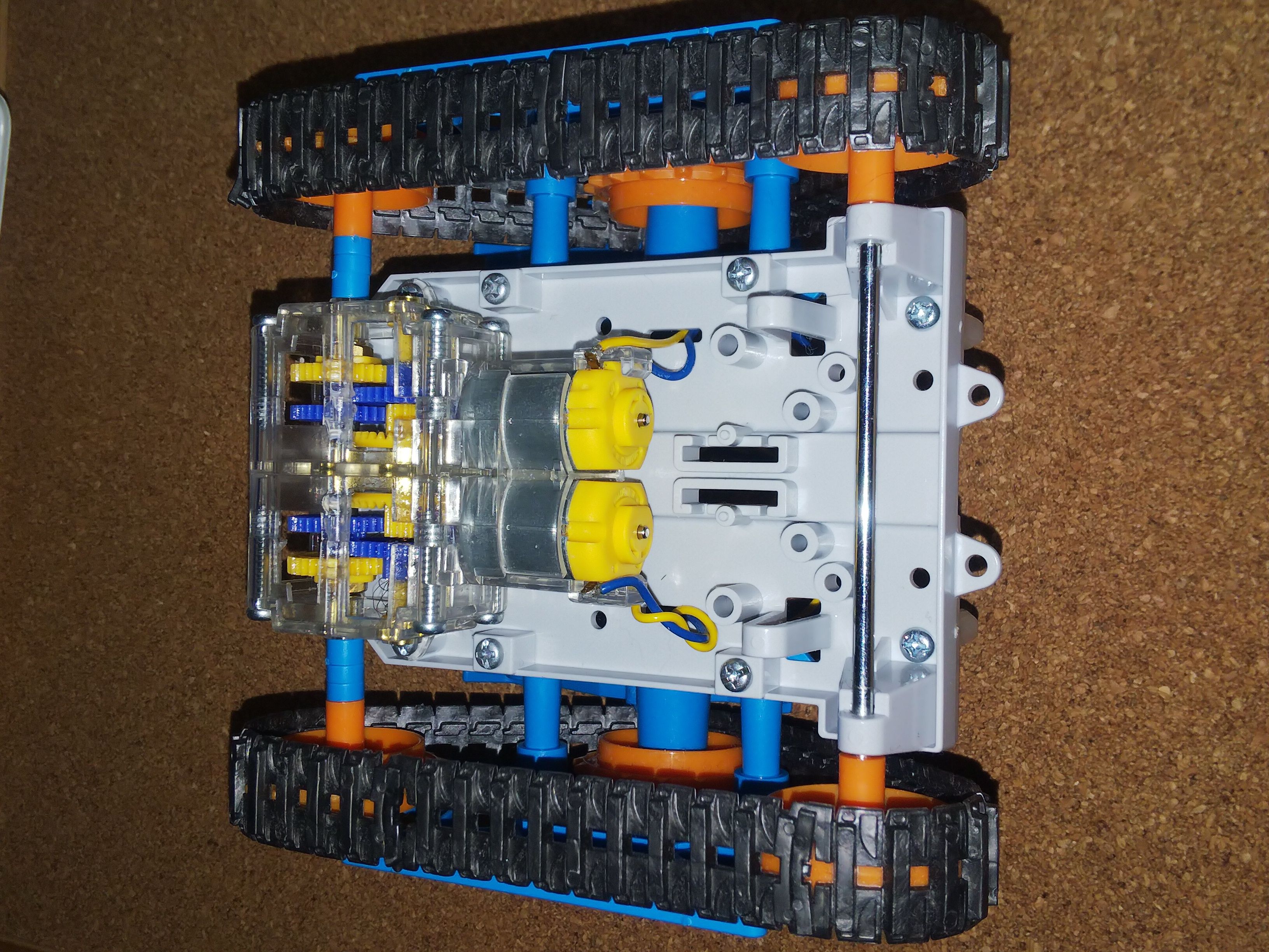 今回は、obniz によりモーターを直接電気的に制御するため、プログラムバーは不要でかつ、スペースの邪魔になる為、その部分は省いて組み立てます。
