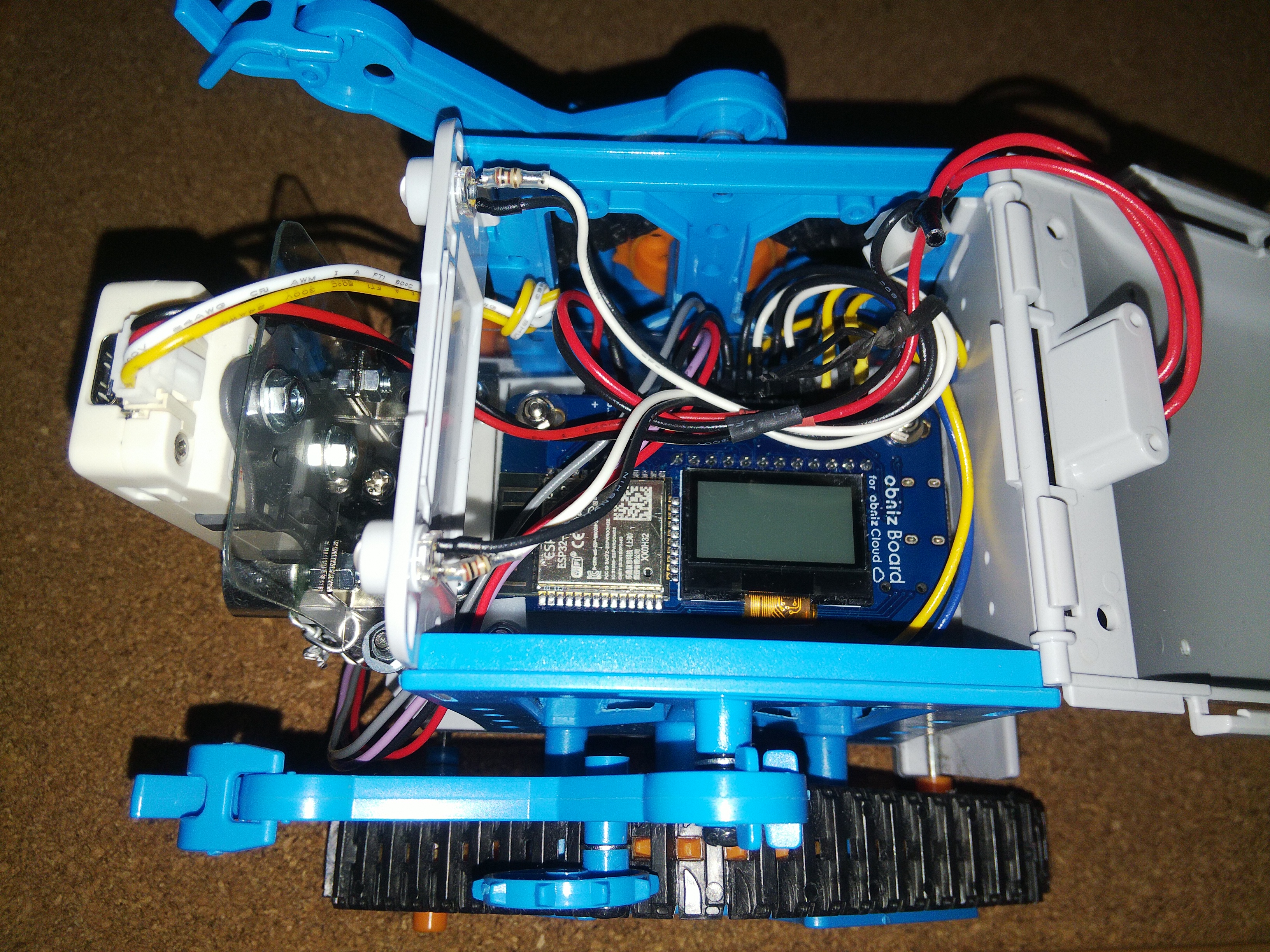 キャタピュラ式の車輪を持つ"カムロボ"を "obniz" で制御。