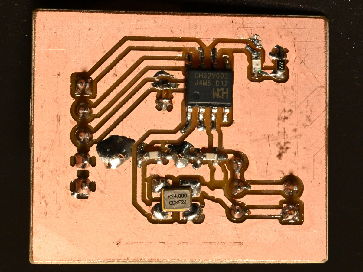 この基板は CNC フライスで銅張積層板を削って作りました。そのためレジスト等の処理がされていません。今回のような実験基板を素早く作れるので重宝しています。