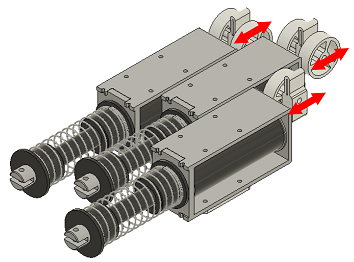 3つのソレノイドそれぞれが直動運動することで、上に乗せている指を曲げている状態から伸ばします。