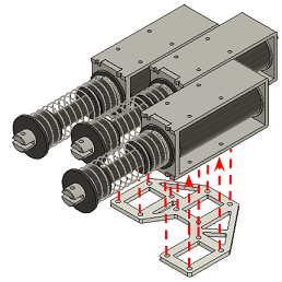 - 土台のパーツとソレノイドをねじ留めします。