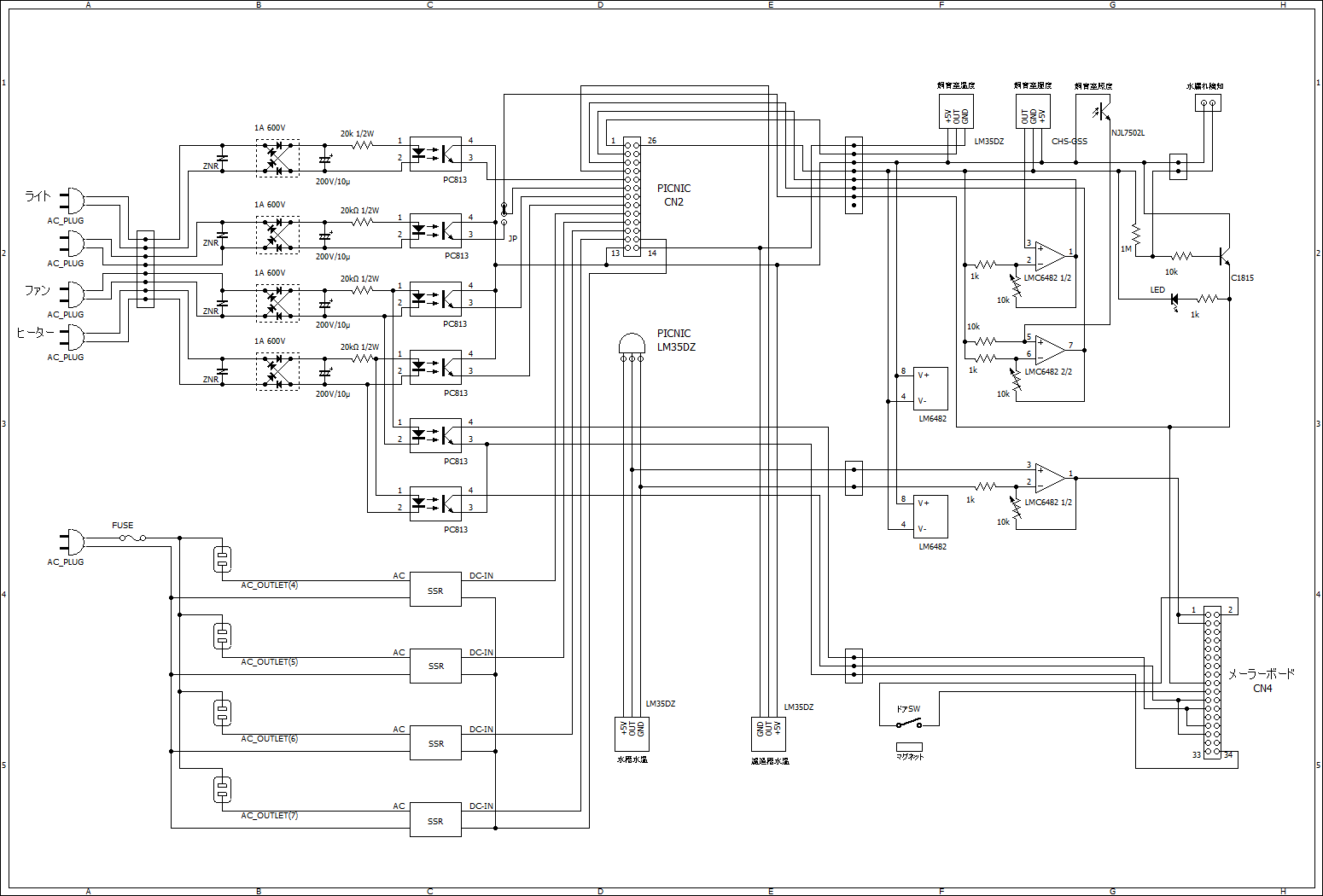 - AC制御・検出部(照明などの強制制御、水槽ヒーター等の稼働状態検知)