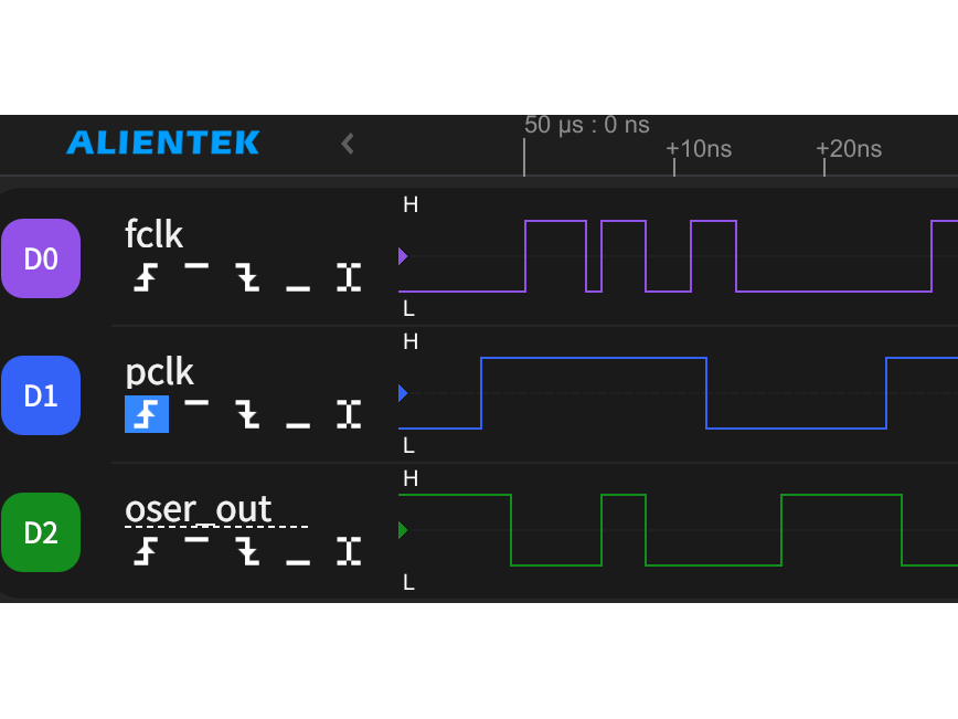 DSLogic では oser_out の幅 1 のパルスは捕捉できていません。
