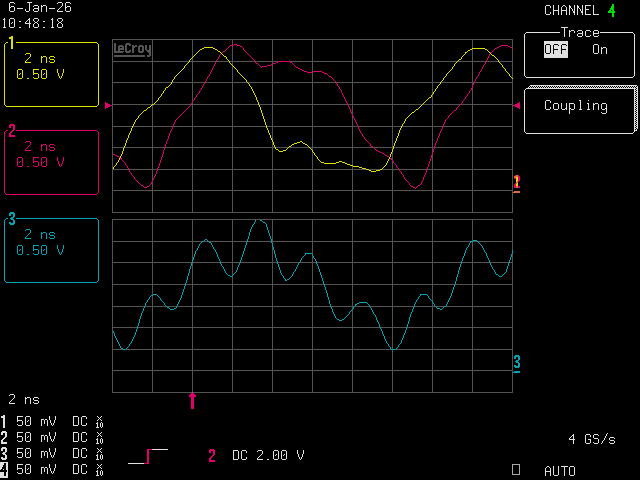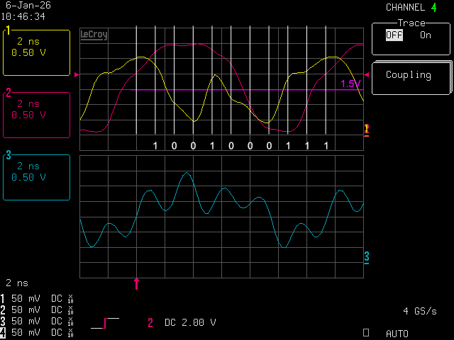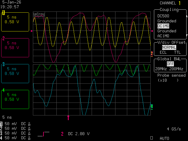 fclk=189MHz とし、テレダイン・レクロイの WavePro 950 で波形を観測してみます。チャンネル設定は次の通りです。