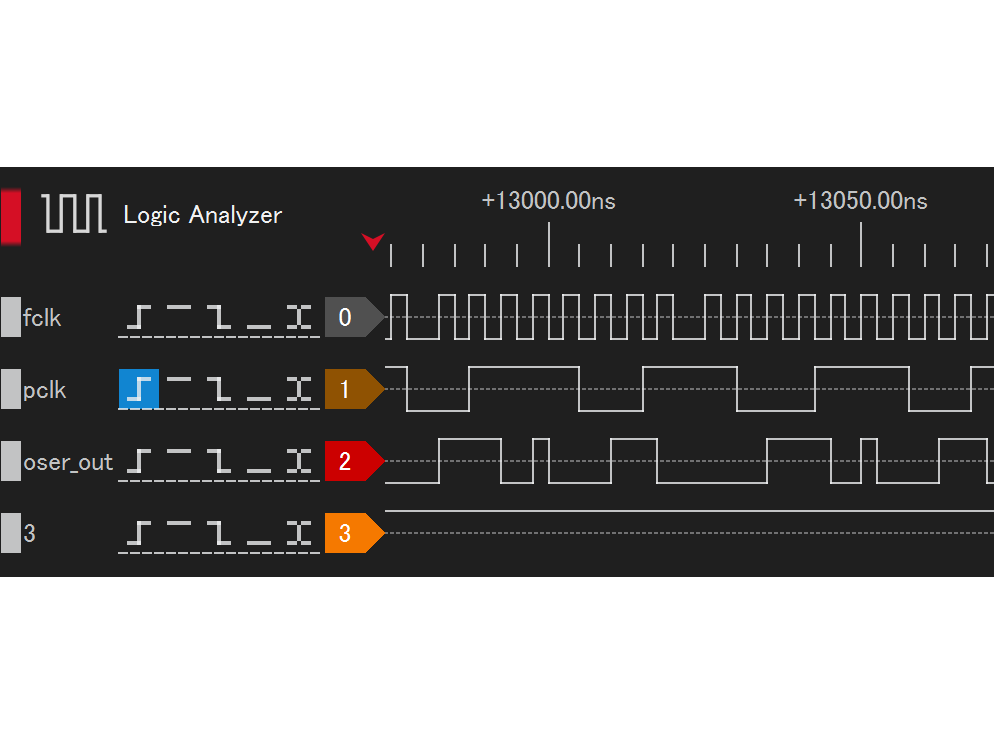 各波形のアナログ的な特徴が分かったところで、ロジックアナライザでの観測を行います。これまで見てきたアナログ波形が、ロジックアナライザによりどのように切り取られるでしょうか。