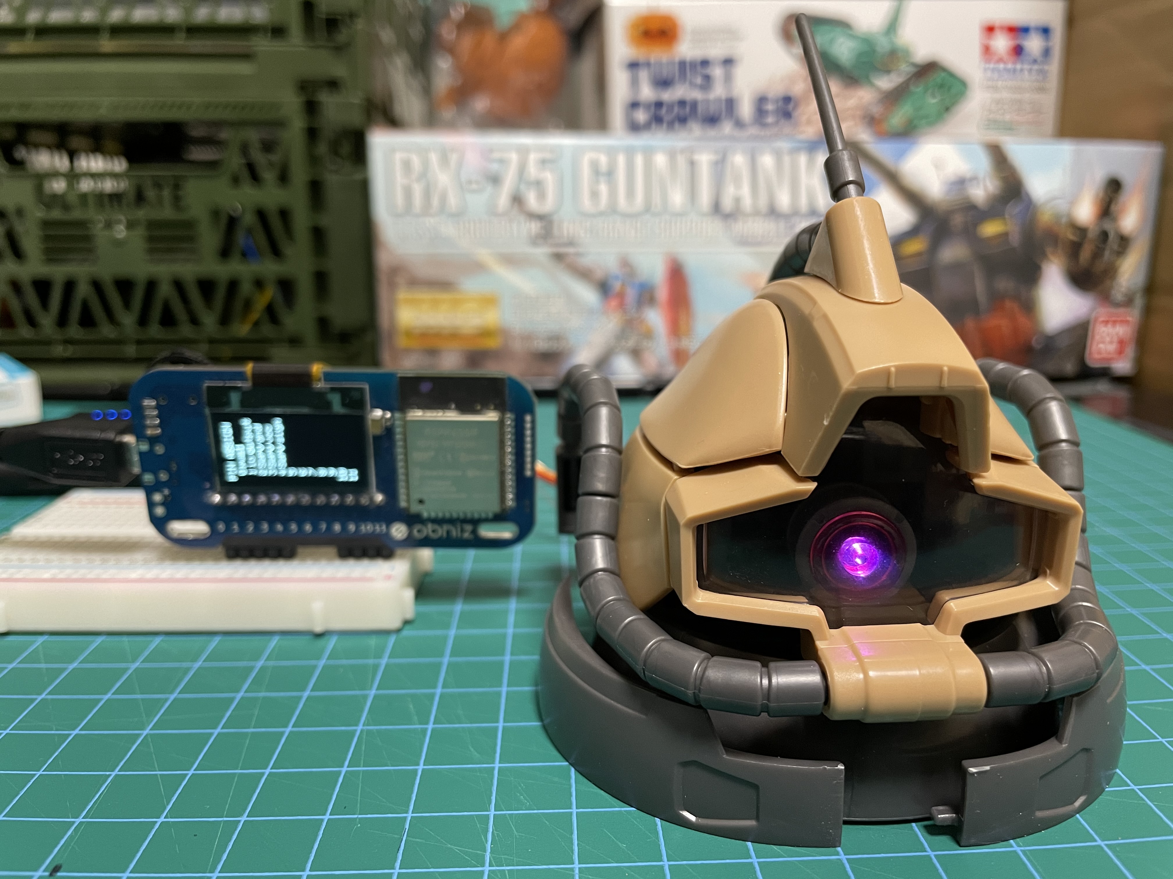 ドムヘッドの中にLEDとサーボモータを埋め込みました。
