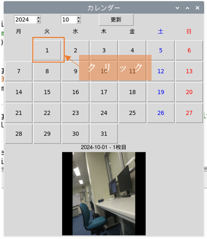 特定の日付をクリックし、写真が入っていれば写真が表示されます。