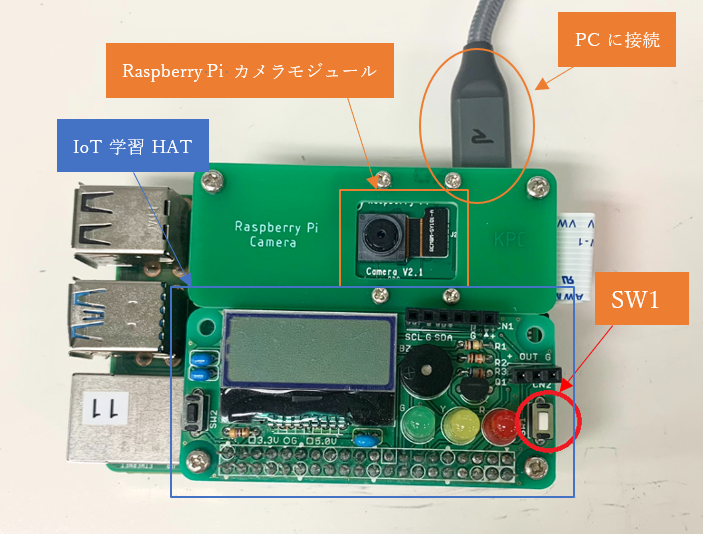 - 撮影する前に、PCで立ち上げThonnyを開き上のプログラムを実行させる。