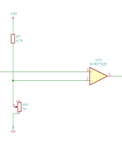 実装するとき、しきい値を作るための抵抗器、半固定抵抗器を逆に取り付けてしまった。
