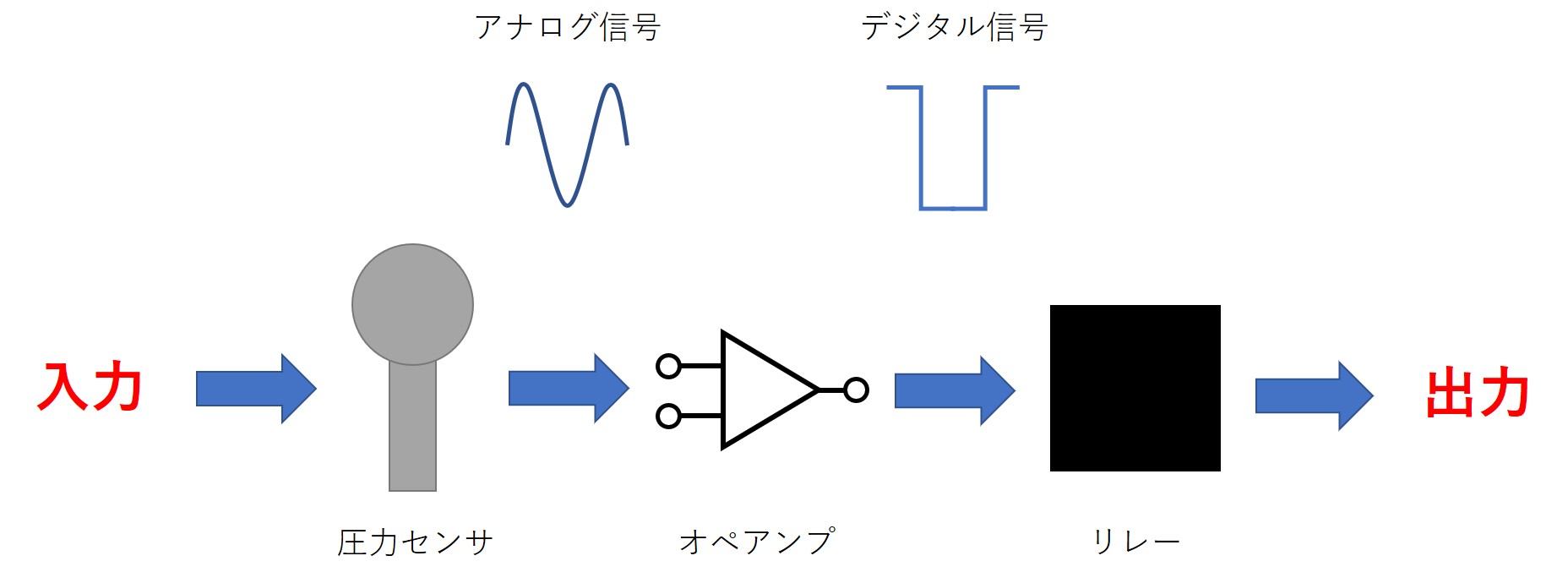 Rail to Railのオペアンプを選定することで、0,1のデジタル信号に変換させる。