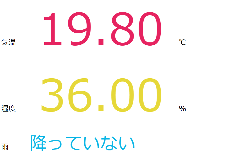 このプログラムは大まかにいうとESP-32自体でWebサーバーを作り、それにアクセスが来たらHTMLを送る、という寸法です。ただ、これは家の中でしか確認ができません。ただ、雨が今降ってきたっていうのを外出中に確認できても何もできないので今回は良しとします。