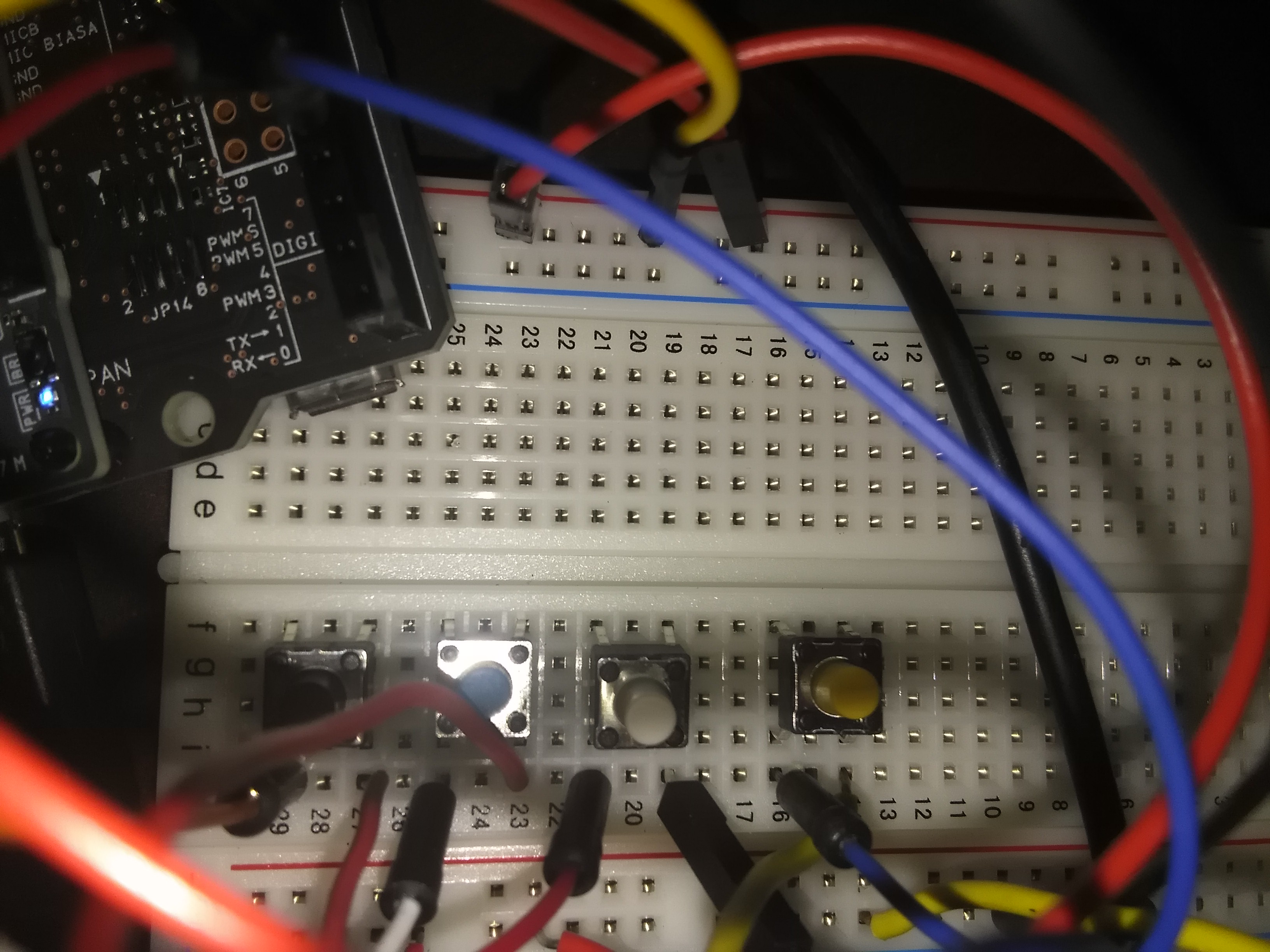 ボタンの配置は次のようになっています。左から順番にNext ボタン、設定1ボタン、設定2ボタン、初期化ボタンです。初期化ボタンは最初はつけたかったですが実装できませんでした。