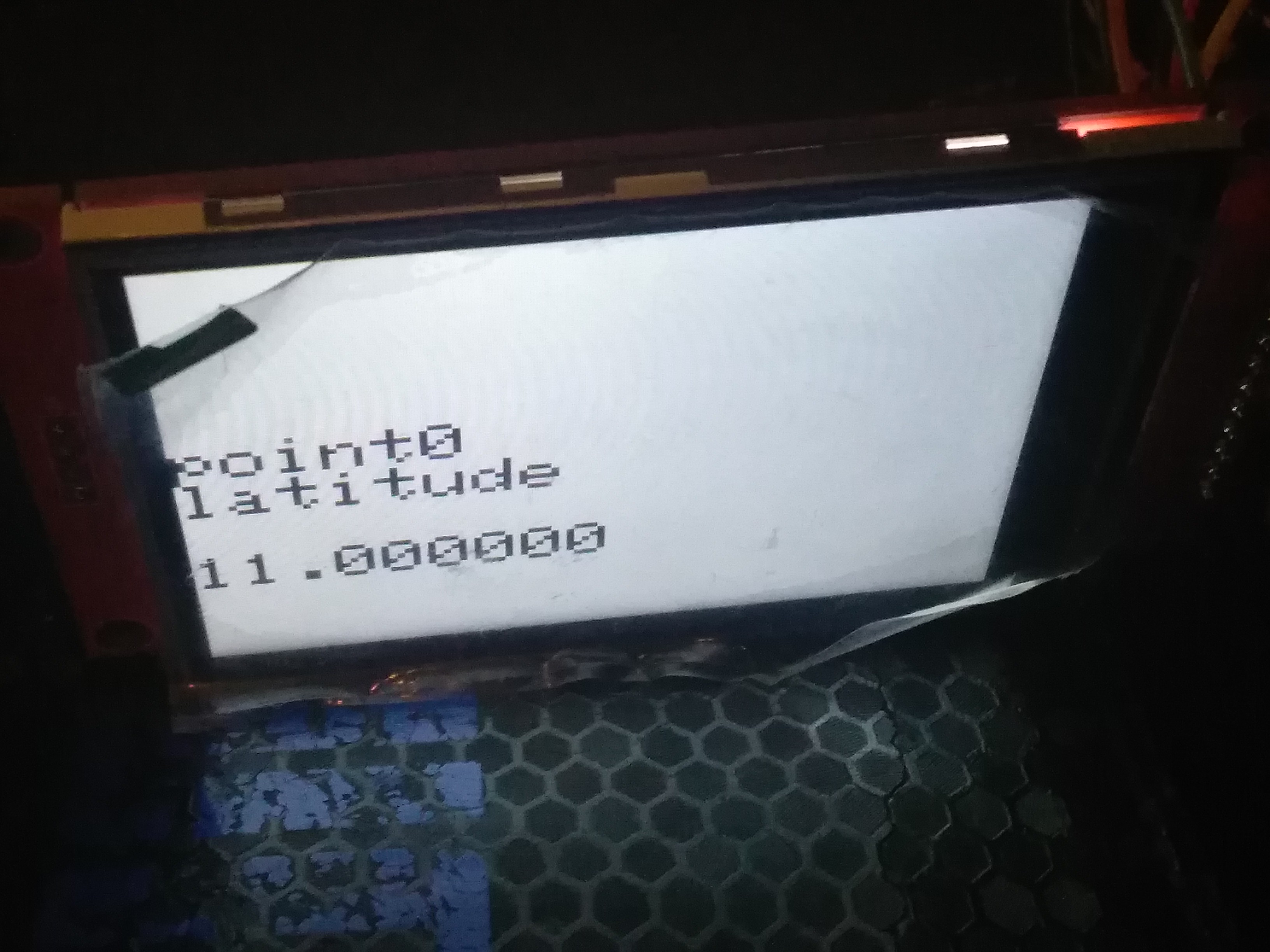 これは上から順に測定時間、次までの経過地点までの距離、速度、ゴールまでの距離を表しています。時間のところが動かなかったです。また、動作確認もできていません。また、写真だけではわかりずらいと思うので動画を載せておきます。ただし、現在カメラがなく、動画を投稿できないので、過去のものを載せます。プログラムは変わっています。失敗している動画なのでわかりずらかったらすみません。