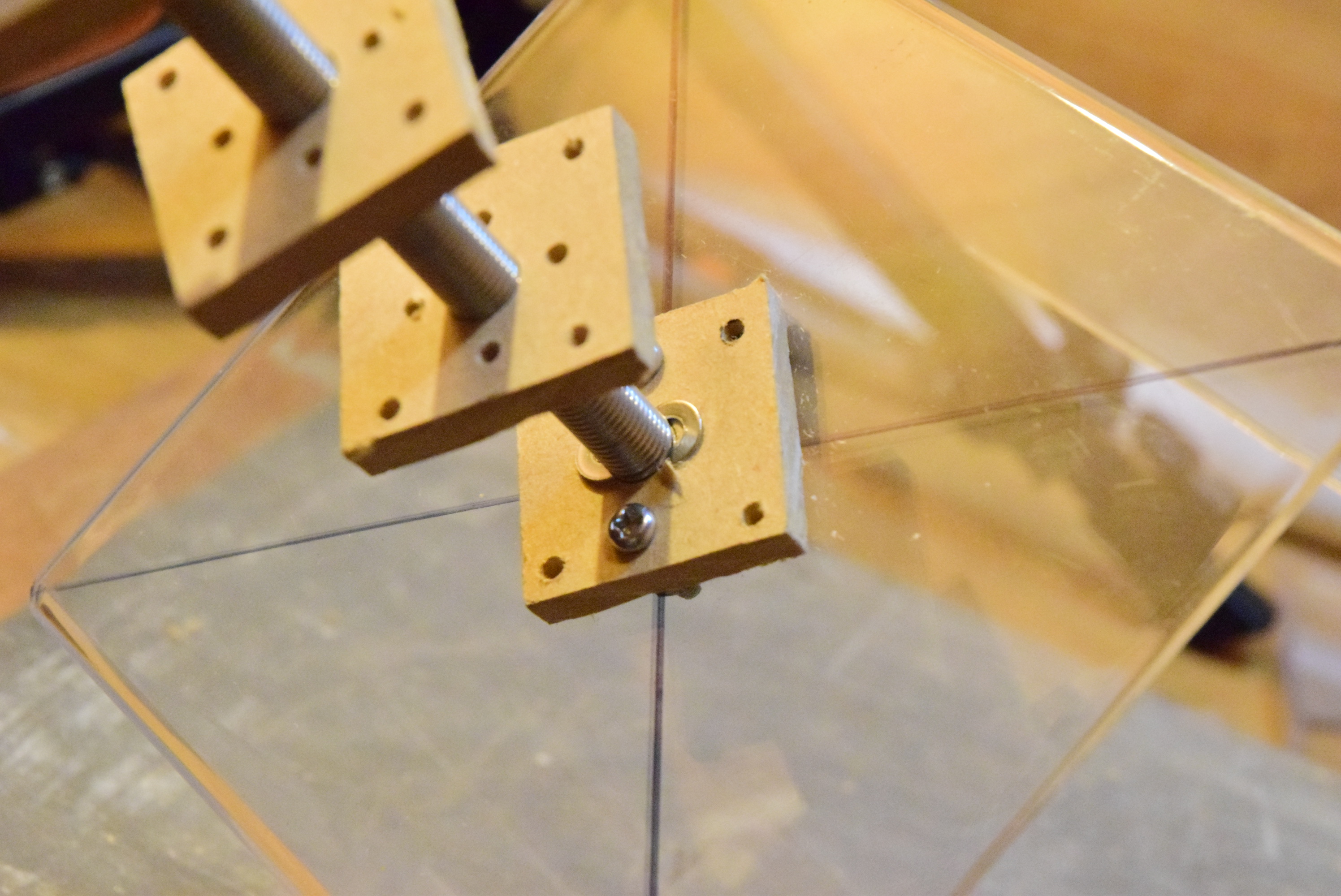 次に、上の画像のように最下部の正方形の板を台座にネジ止めしてください。