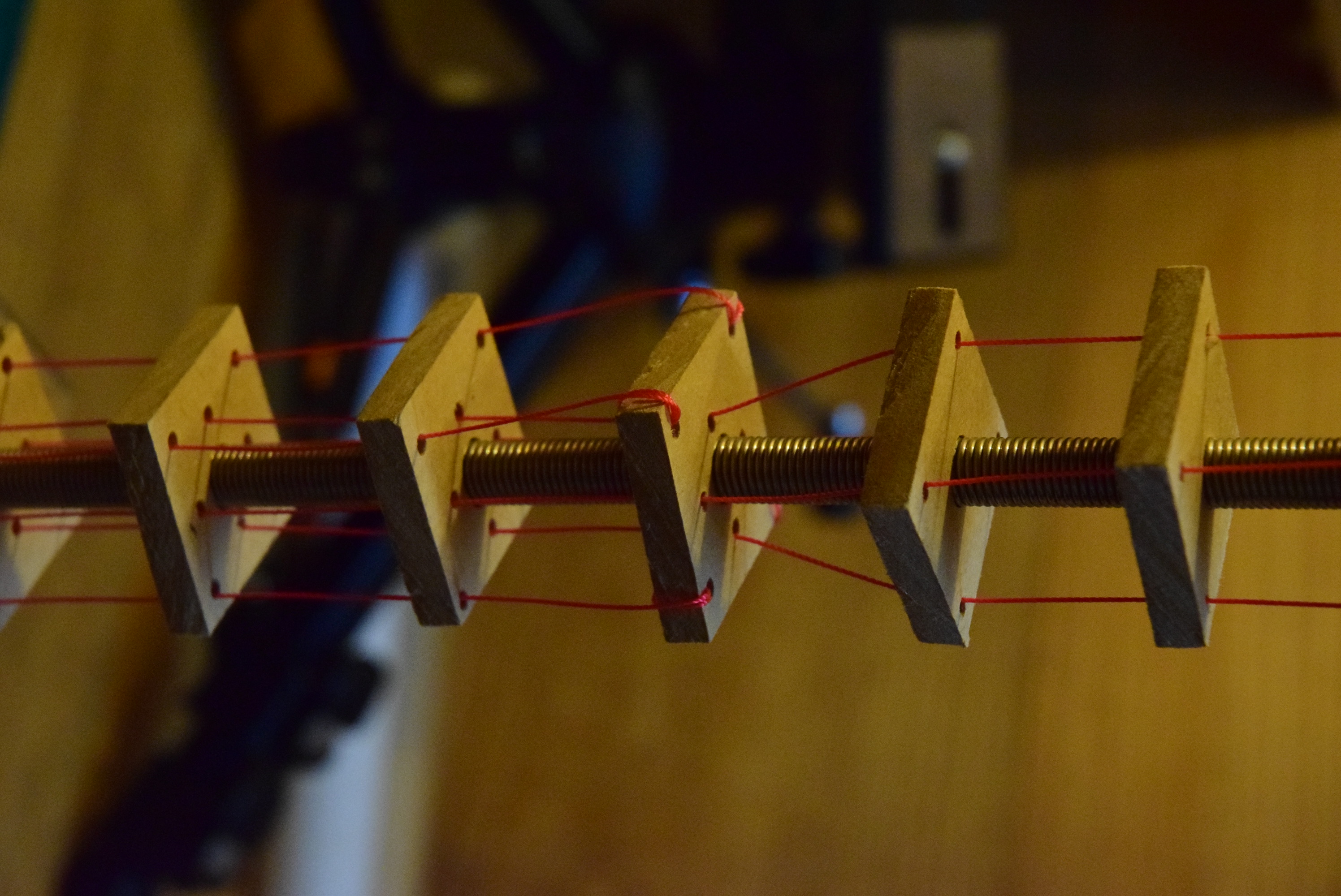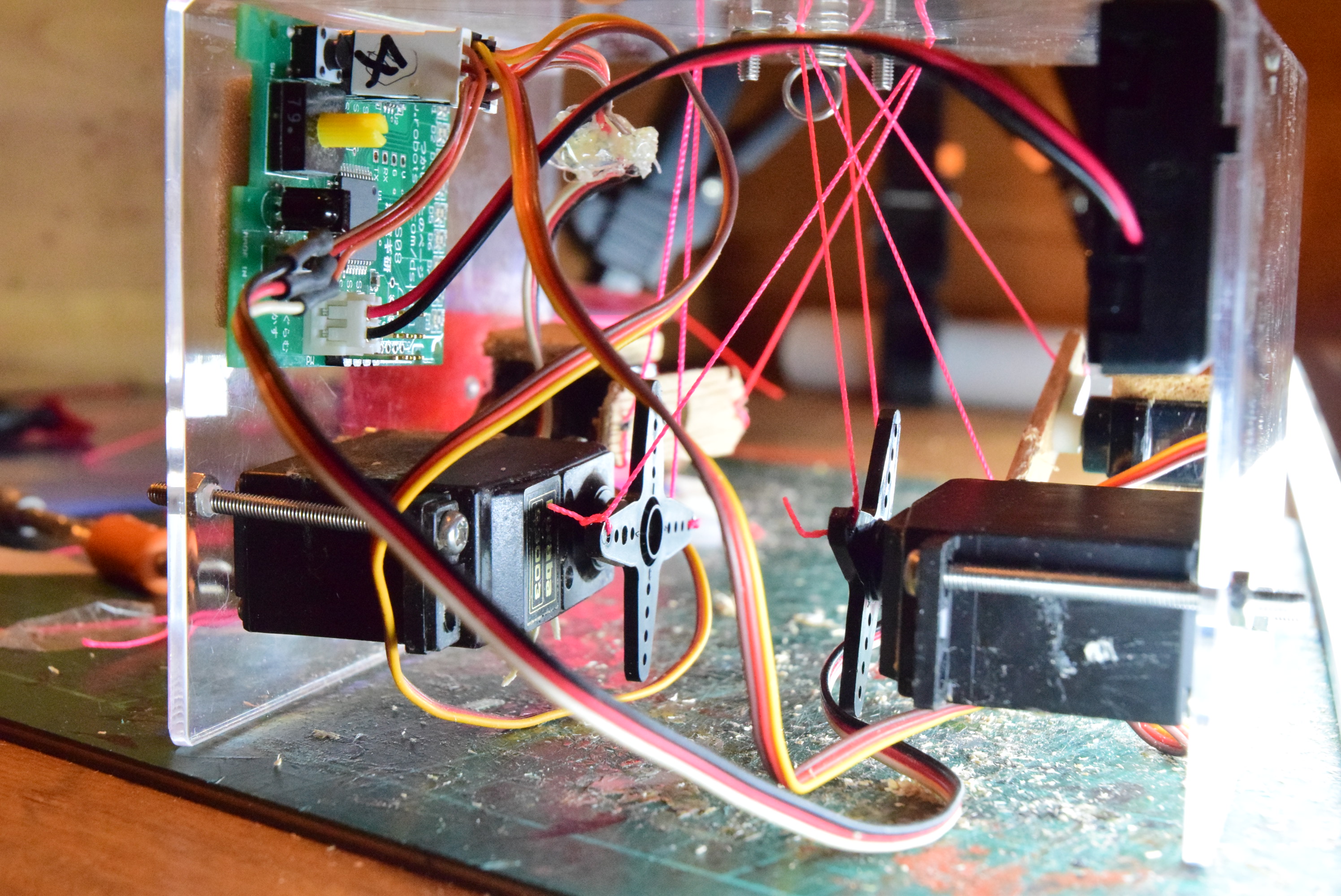 サーボの初期位置が調べられたら、紐を対応するサーボホーンに縛っていきましょう!