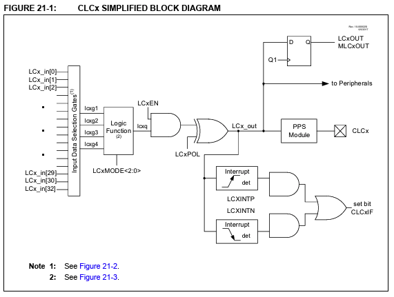 実質的に上の2つはほぼ同じなので、LC1_outしか選択肢が無いが、鬼門のCLCモジュールを使わなくてはいけなくなる。ここでCLCモジュールにLFINTOSC(31kHz)が入力できればいい。