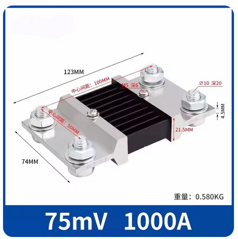 3)1000Aで75mVって事は、このシャント抵抗は75μΩと言う事だ「工業用シャントではこのクラスは珍しくなく、重要なのは抵抗値そのものより温度上昇時のΔR/Rである」