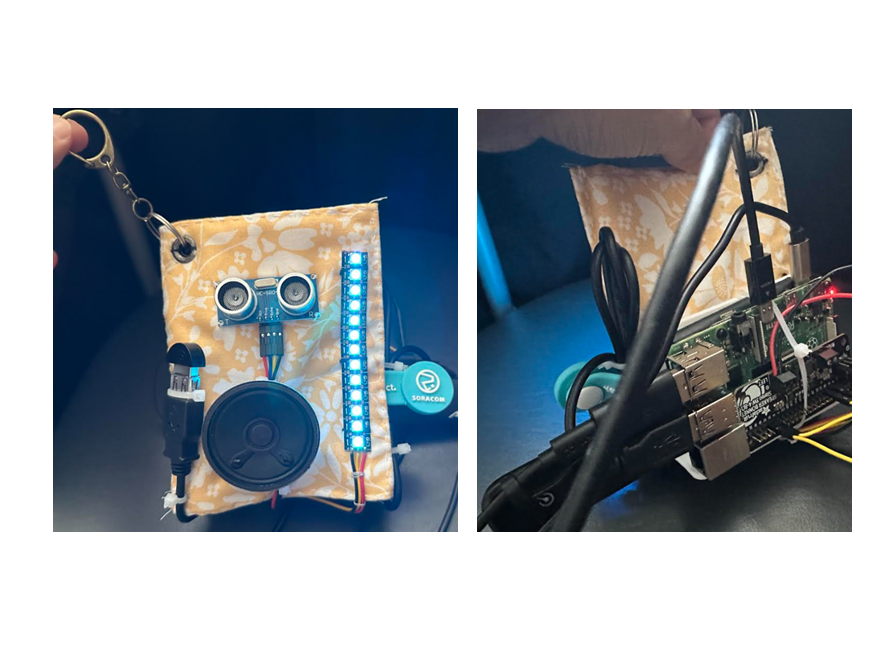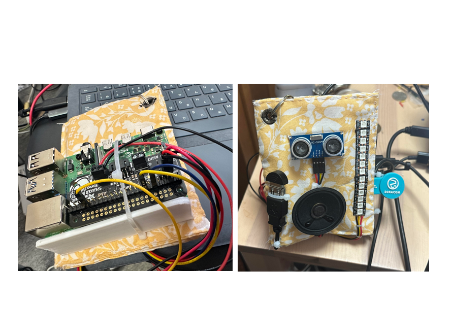 音声メッセージが再生されます。(自分の意図したタイミングで音声を再生させたかった為、超音波センサを