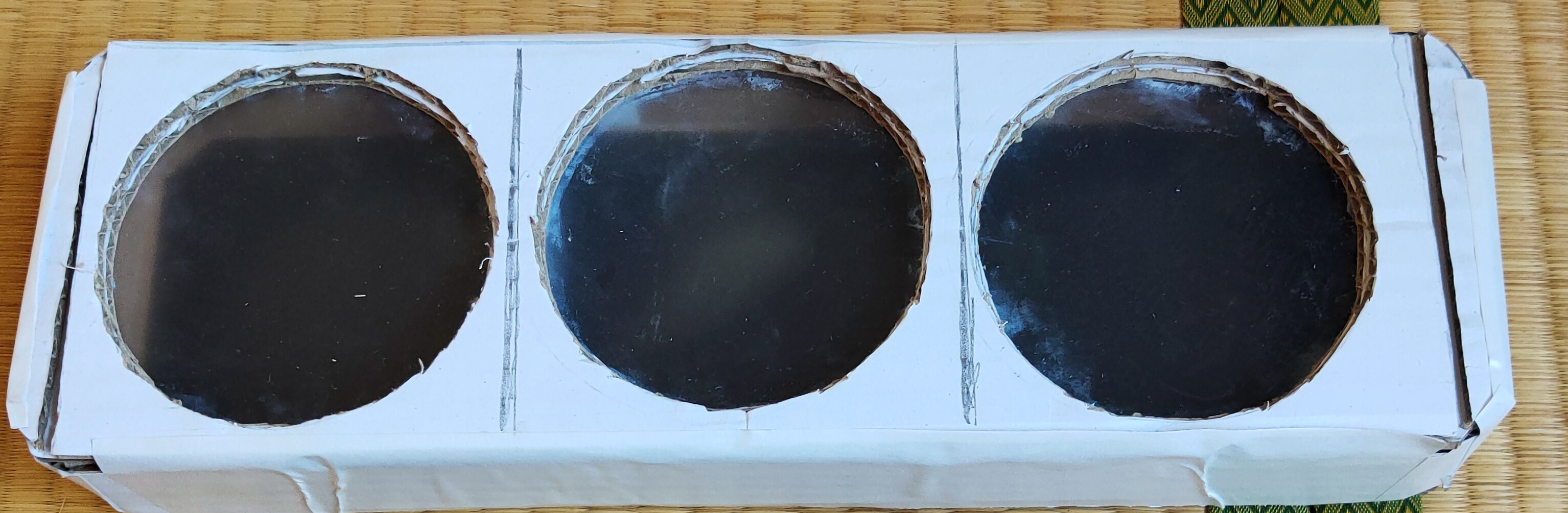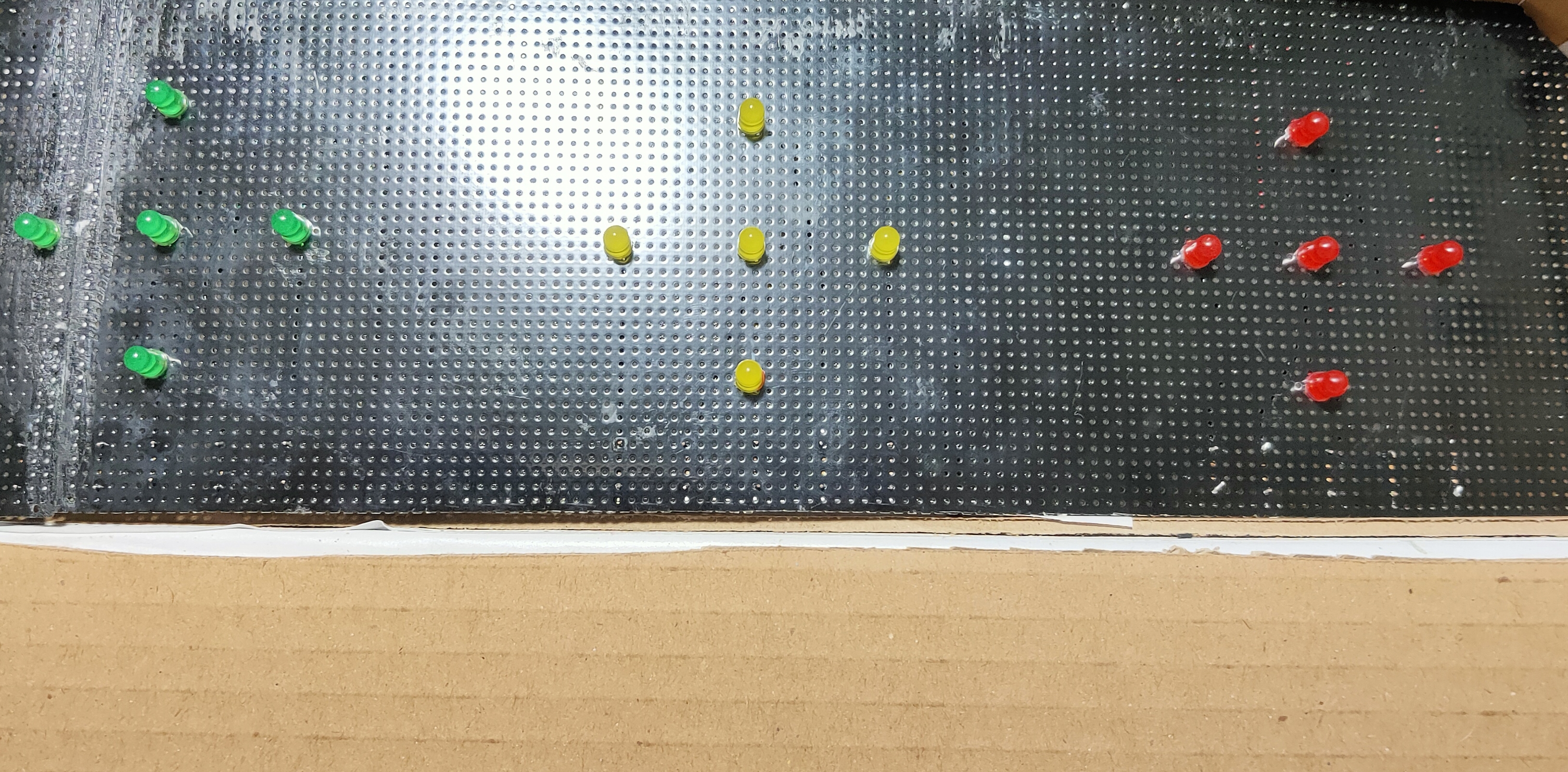 LEDはそのままだと光が拡散されずに点に見えてしまう為、面で発行するようにティッシュペーパーを入れる