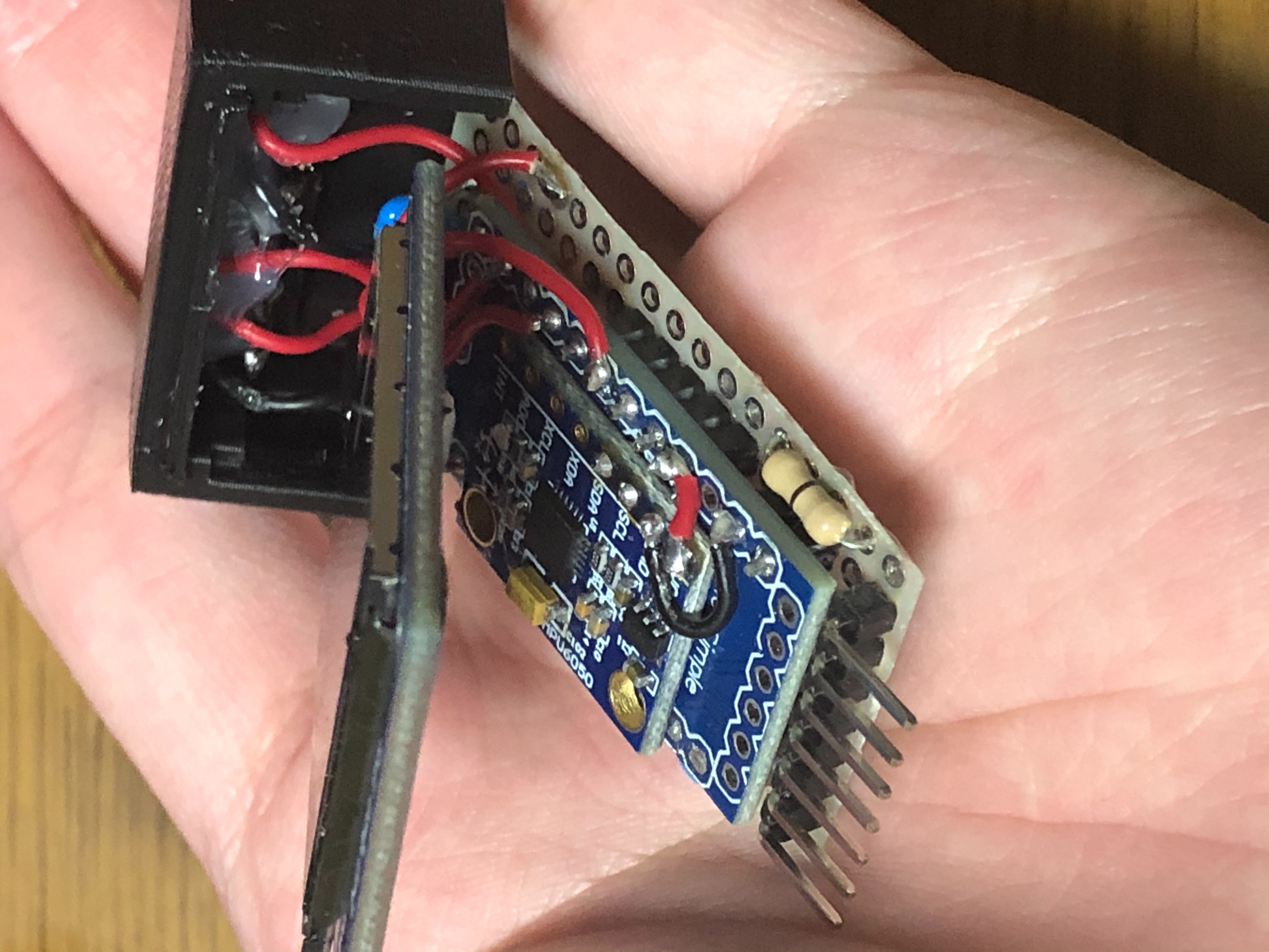 マイコンはarduino pro miniを使ってます。またMPU6050ジャイロセンサを搭載しているので、傾きを計測することができます。