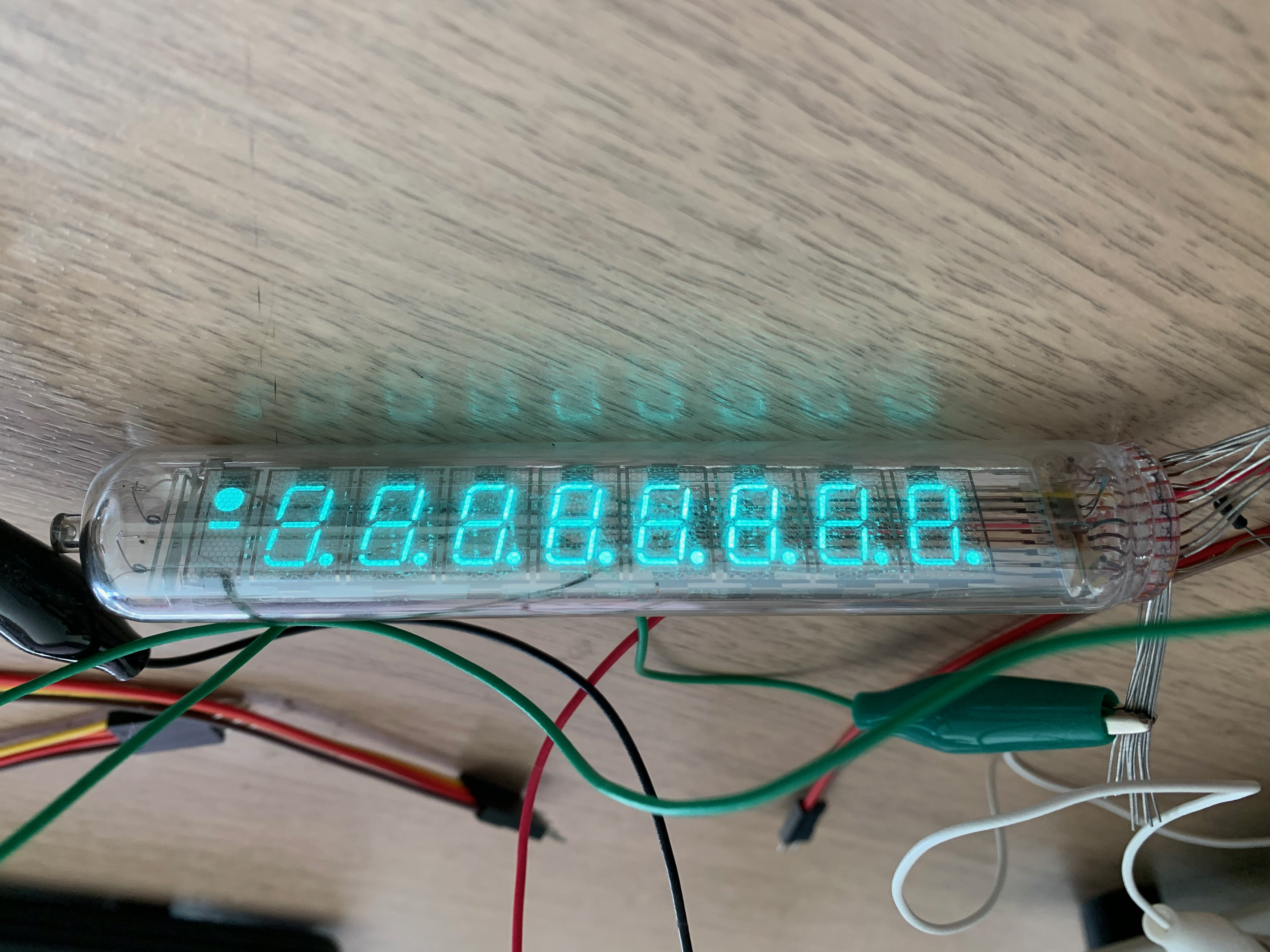 ニキシー管とは異なり、青緑色の表示で結構気に入っています。