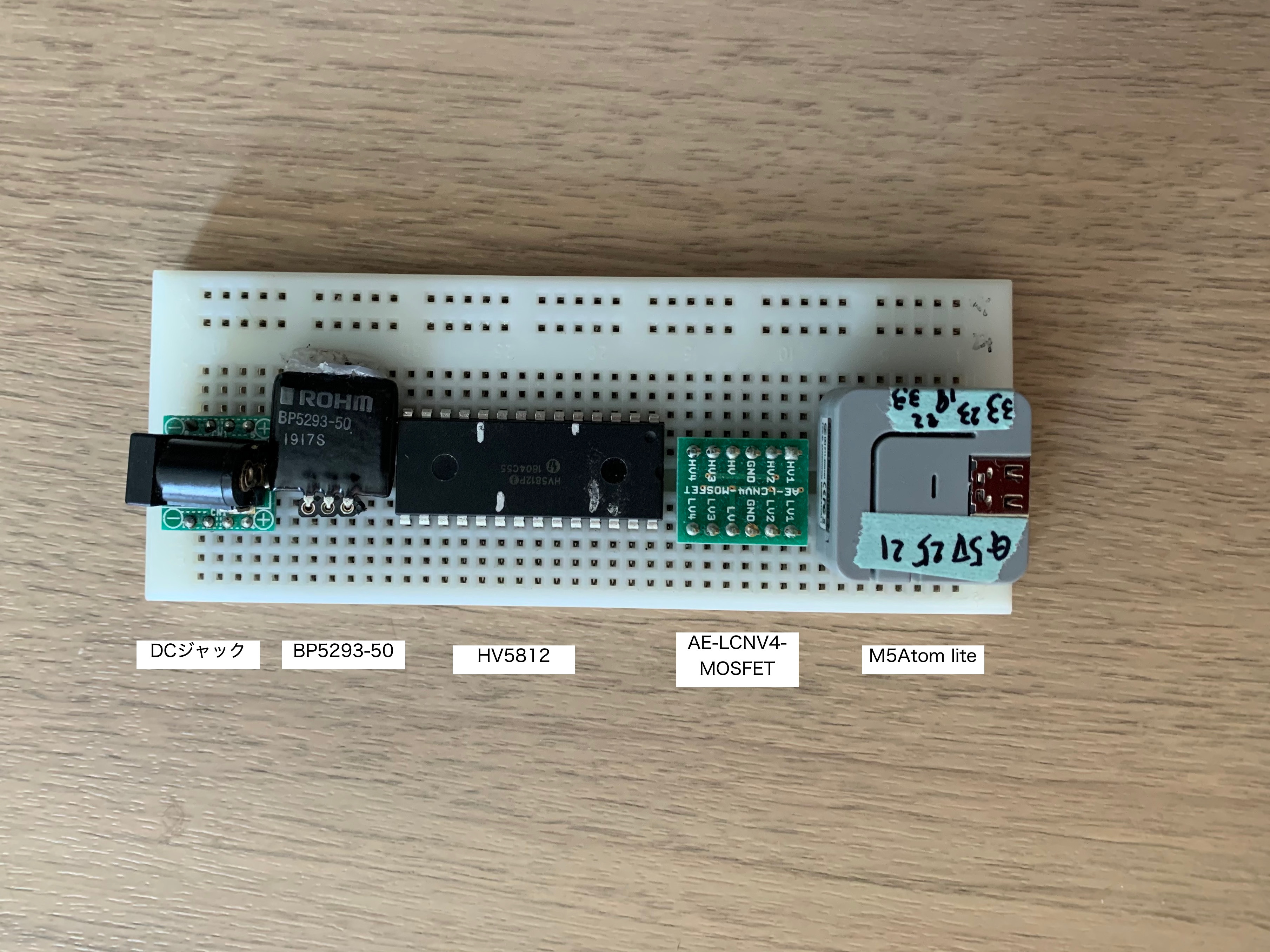 IV-18のフィラメントとHV5812のコントロールに5V を必要としますので、DC-DCレギュレータで 24Vから5Vを作成。