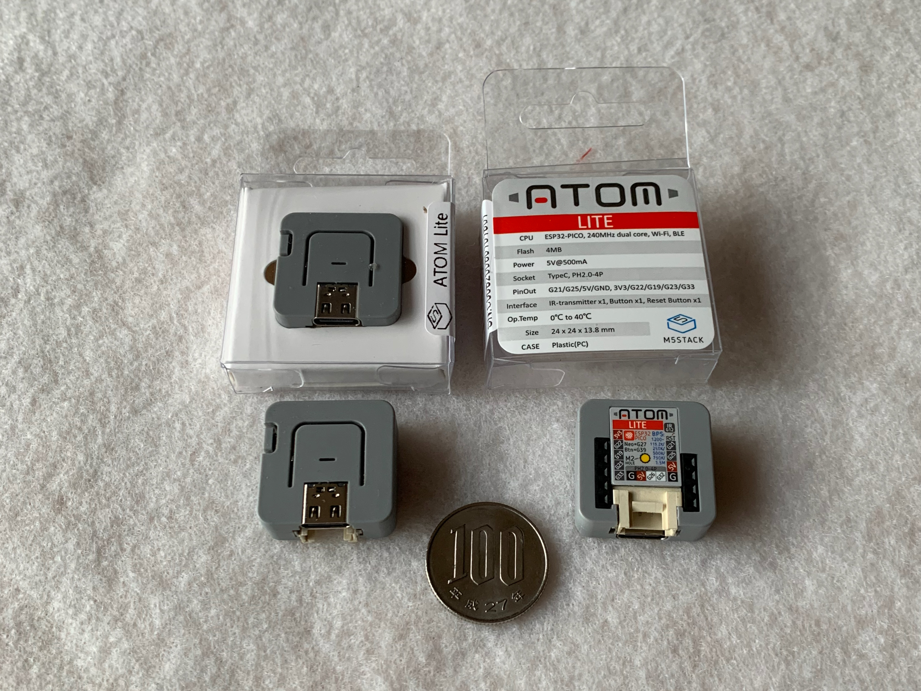 小さい、安い、でもI/O端子が多い、更にWiFi,Bluetoothが使える。言うことはありません。RTCのついているM5Stick-Cを使おうとも考えたのですが、どうせ時刻合わせをしなければならないなら、Atom liteで充分と考えました。 -