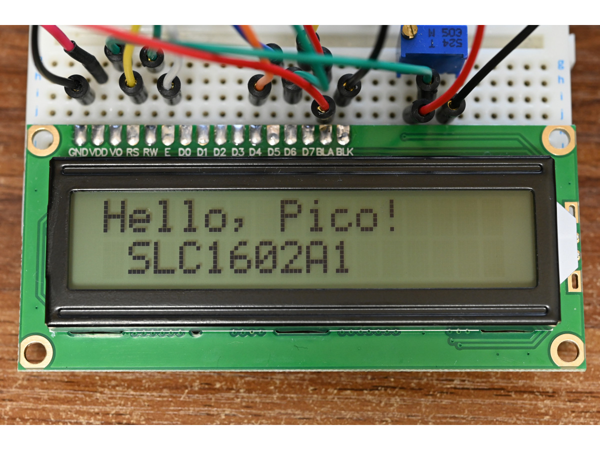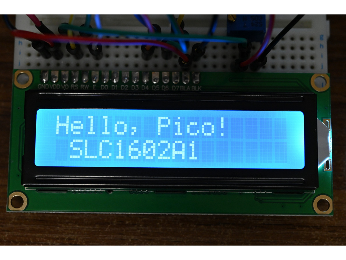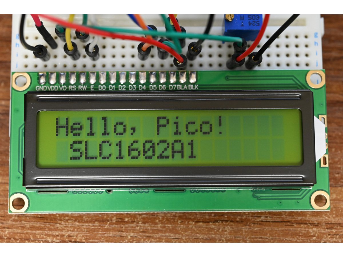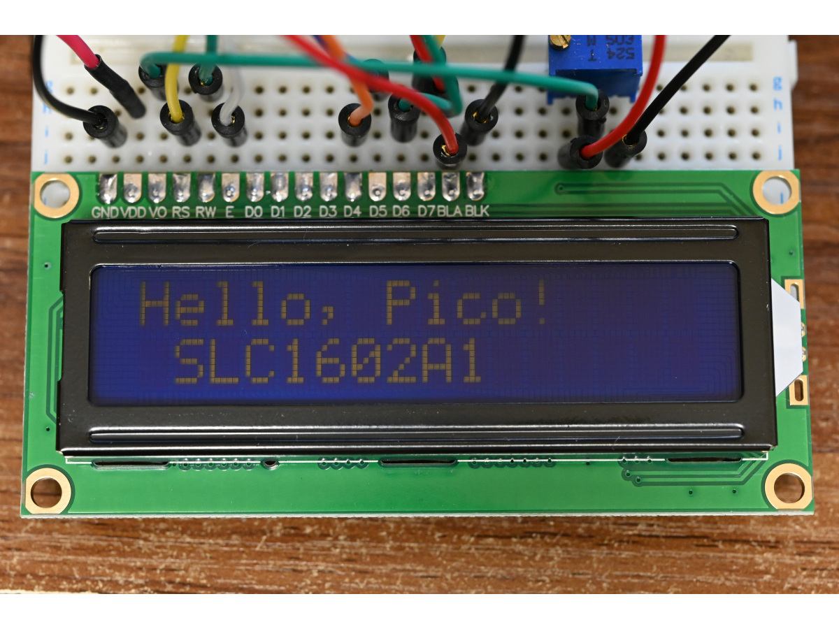 背景の色は、今回比較した 3 つの色のうちで最も、私が使い慣れている反射型 LCD の SC1602BS*B-XA-GB-K に近いと思います。