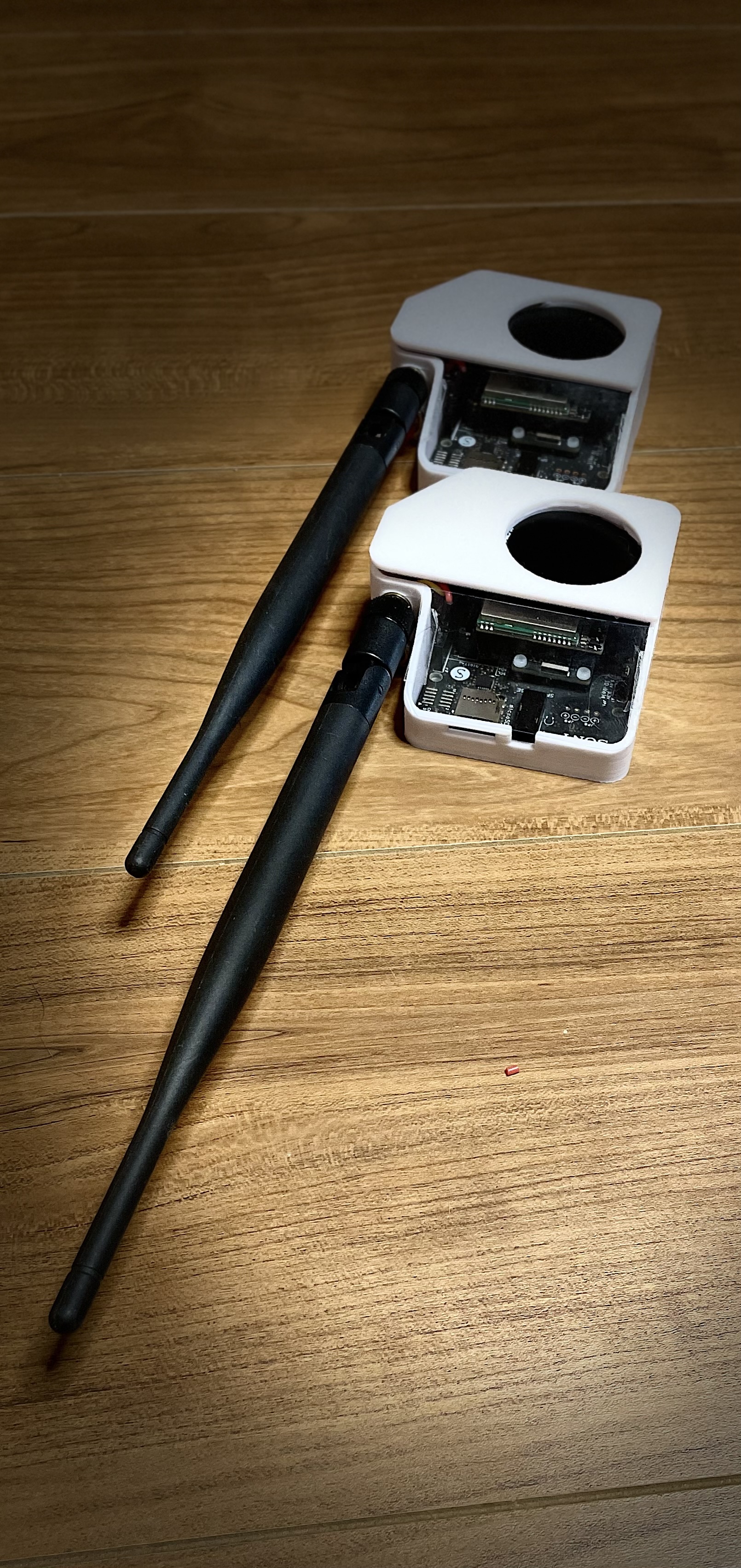 2台のSpresenseが、それぞれGNSS受信機とLoRaモジュールを搭載し、システムの心臓部を担います。2台のSpresenseがお互いの位置情報を共有することで、より正確な方位の計算が可能になります。 - GNSSモジュール: