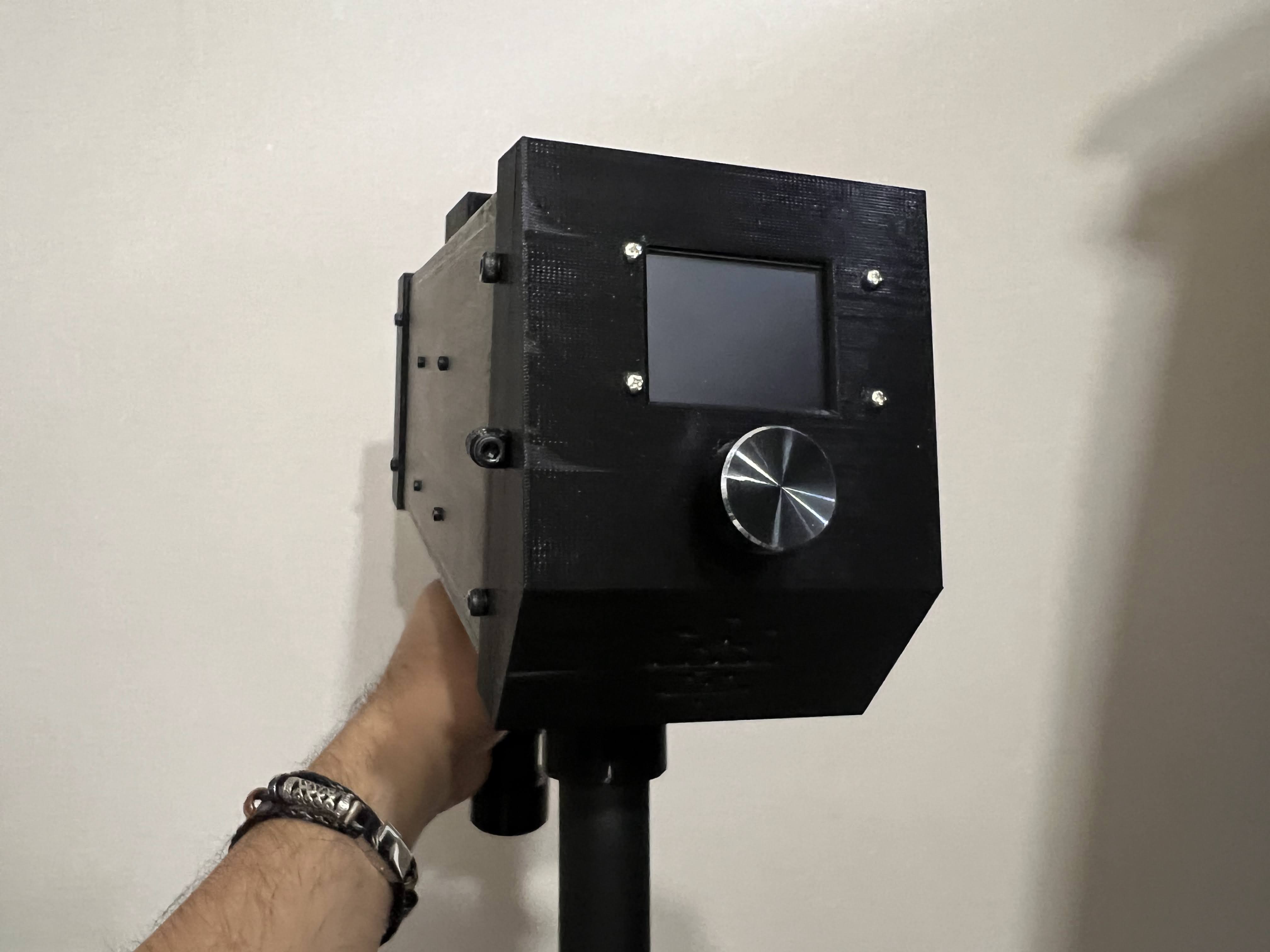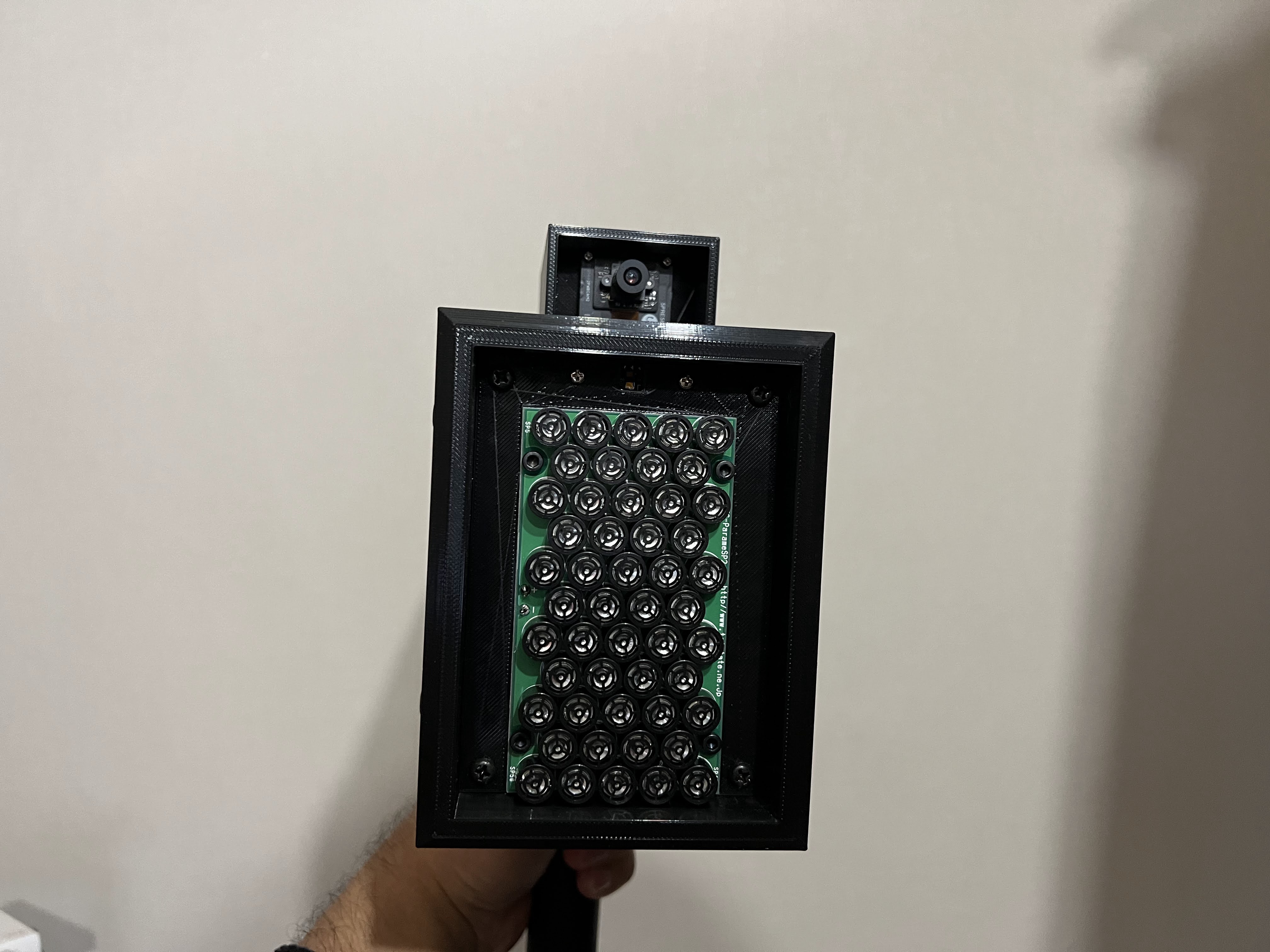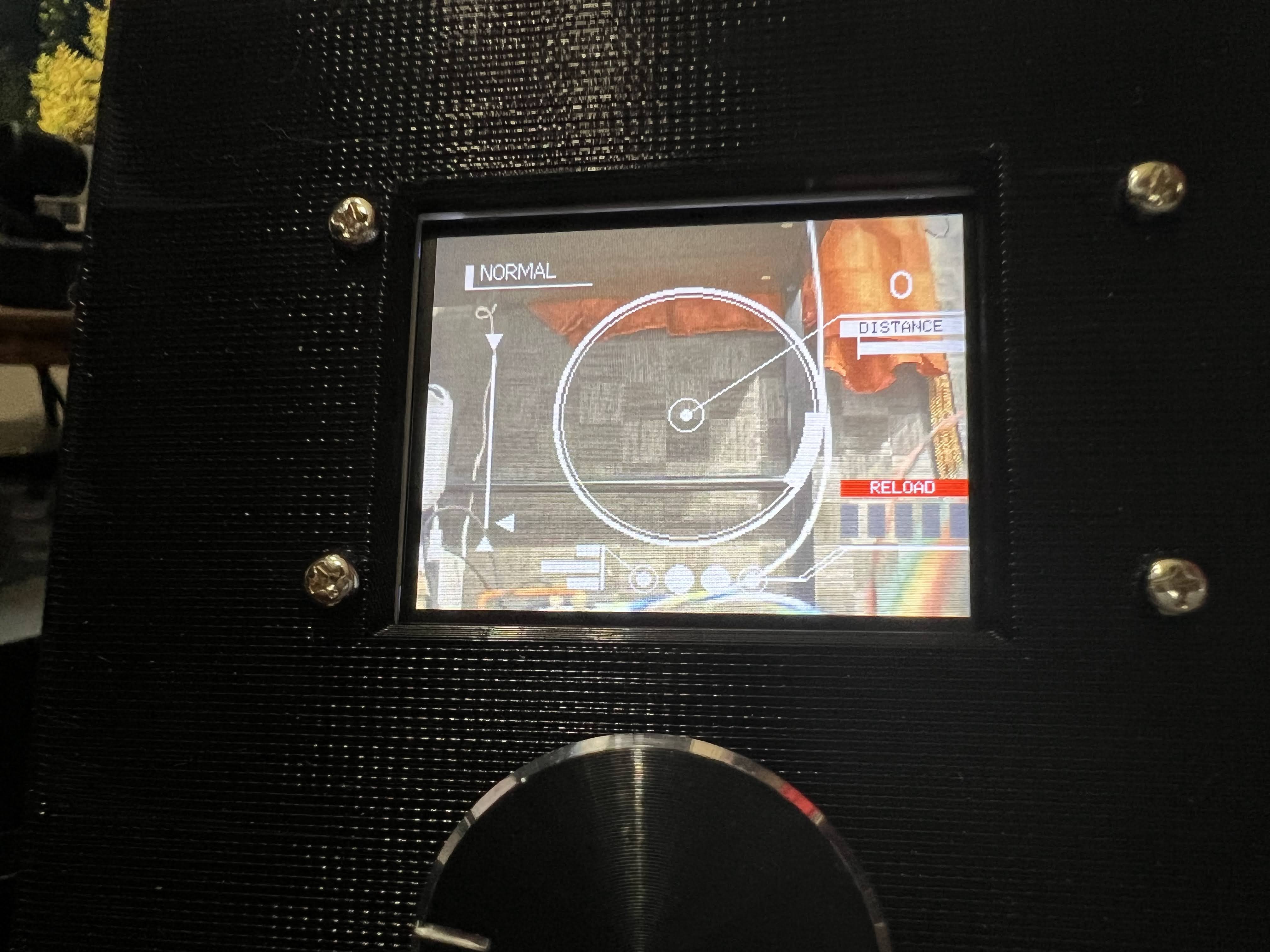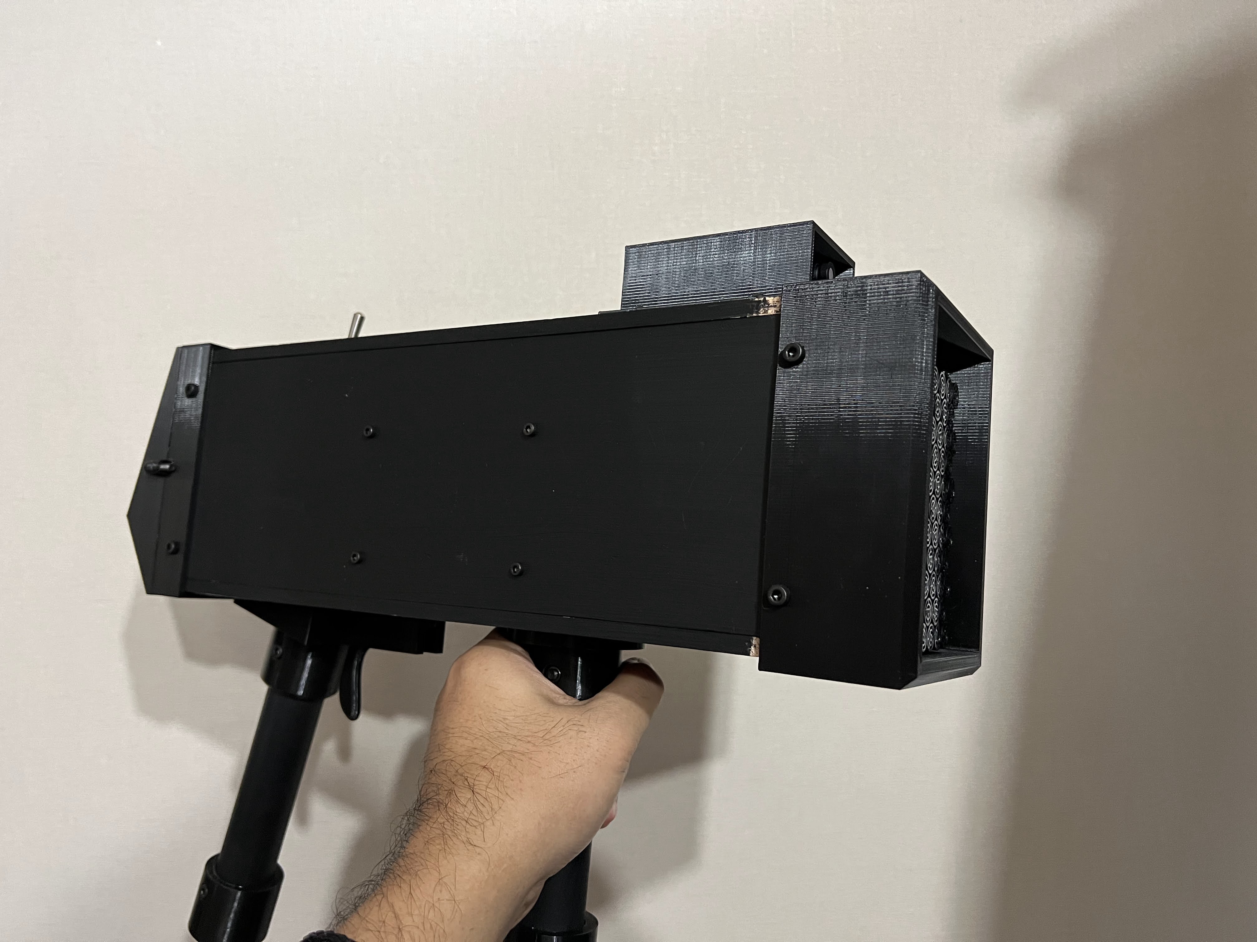 銃口には、ToFの距離センサーもつけており、対象物までの距離などもモニターに表示しています。