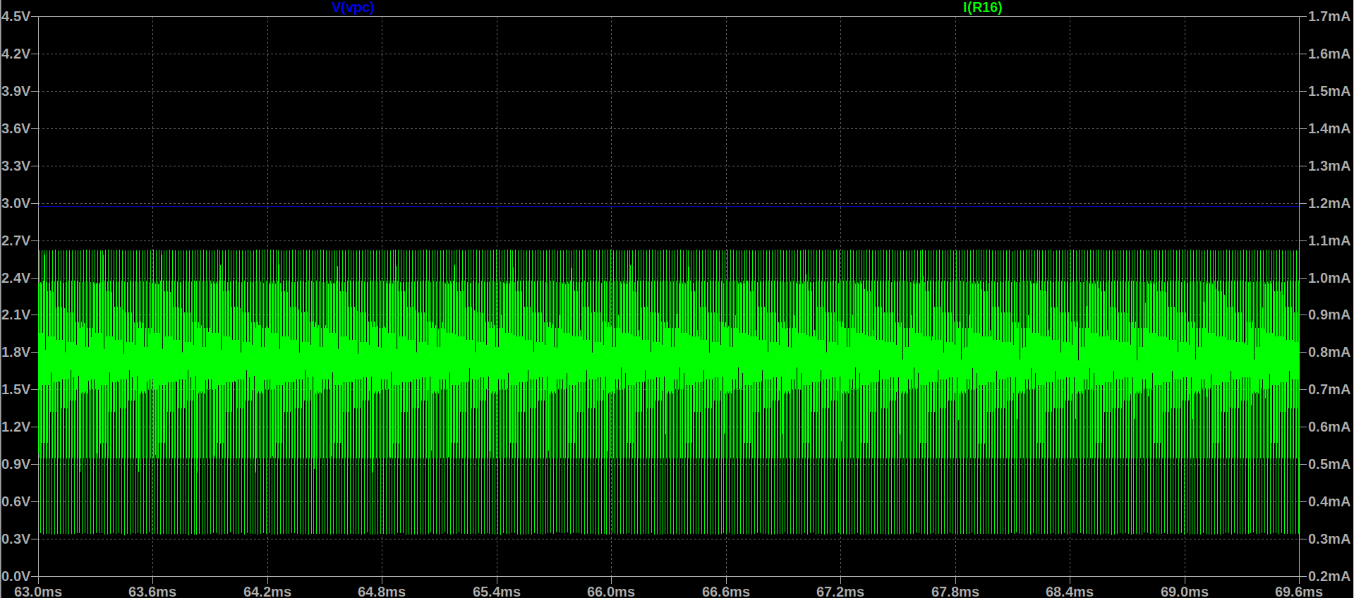 かなり余裕ができて、さらに電流が流せるようになりました。この条件でエアギャップlg=1mmと決まりました。(もっと厳密に式を変形してエアギャップを求めたほうが、結合度が高まってサージも減るんですけどね...結構大雑把です)