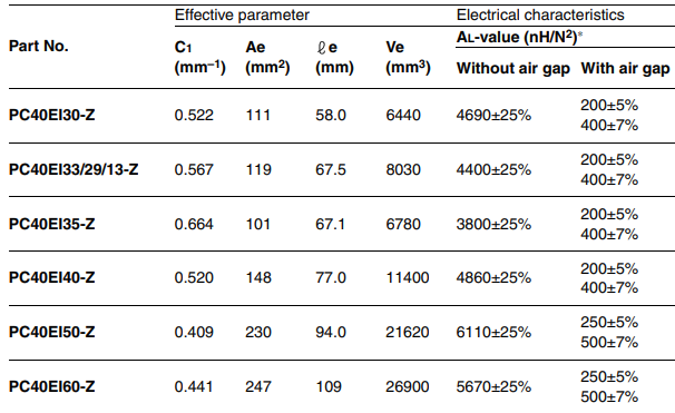 PC40EI40の磁路断面積Ae=148mm^2、AL値は4860nH/N^2となります。ここからコアに発生する最大磁束密度は