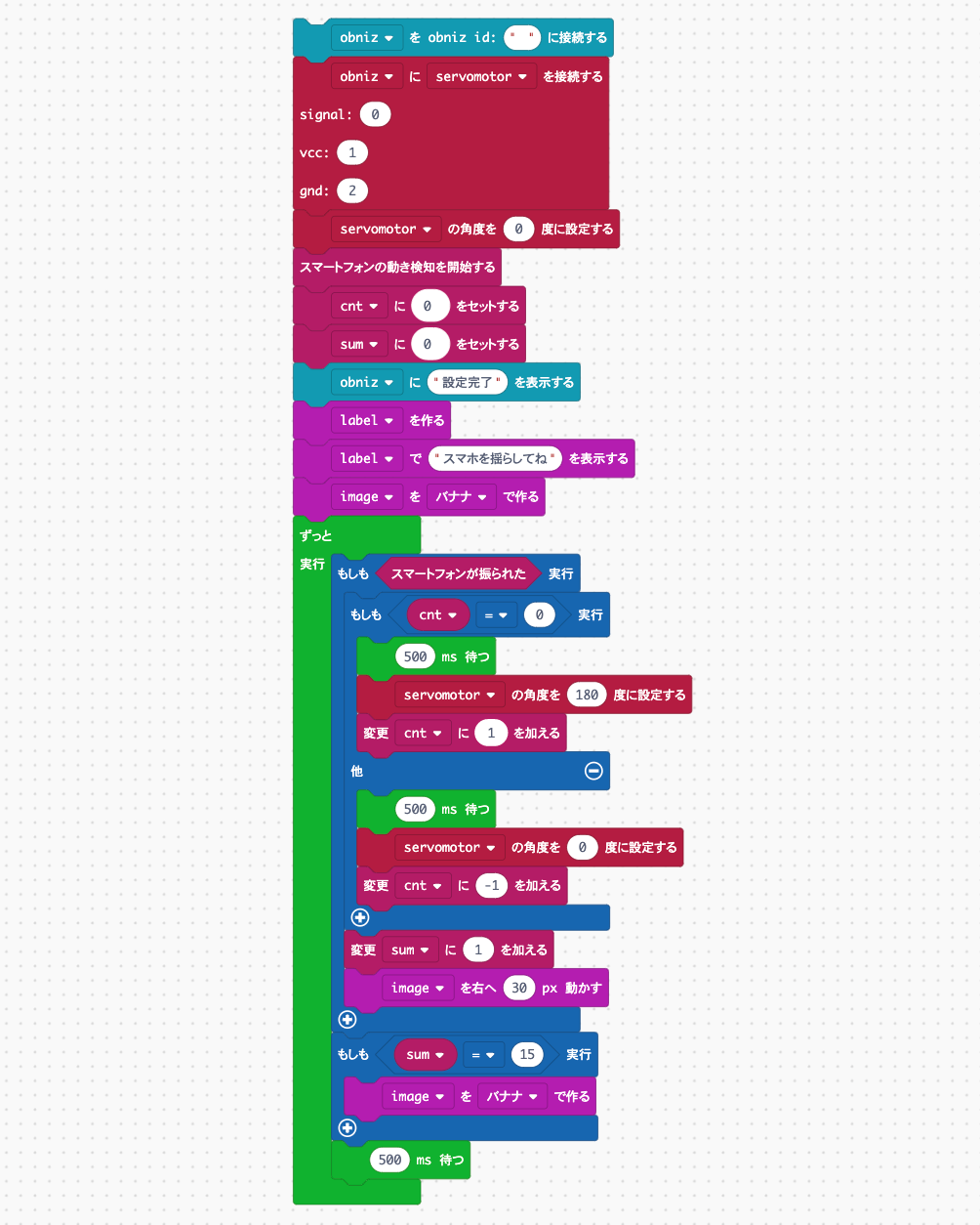 プログラムはブロックプログラムで作成しました。