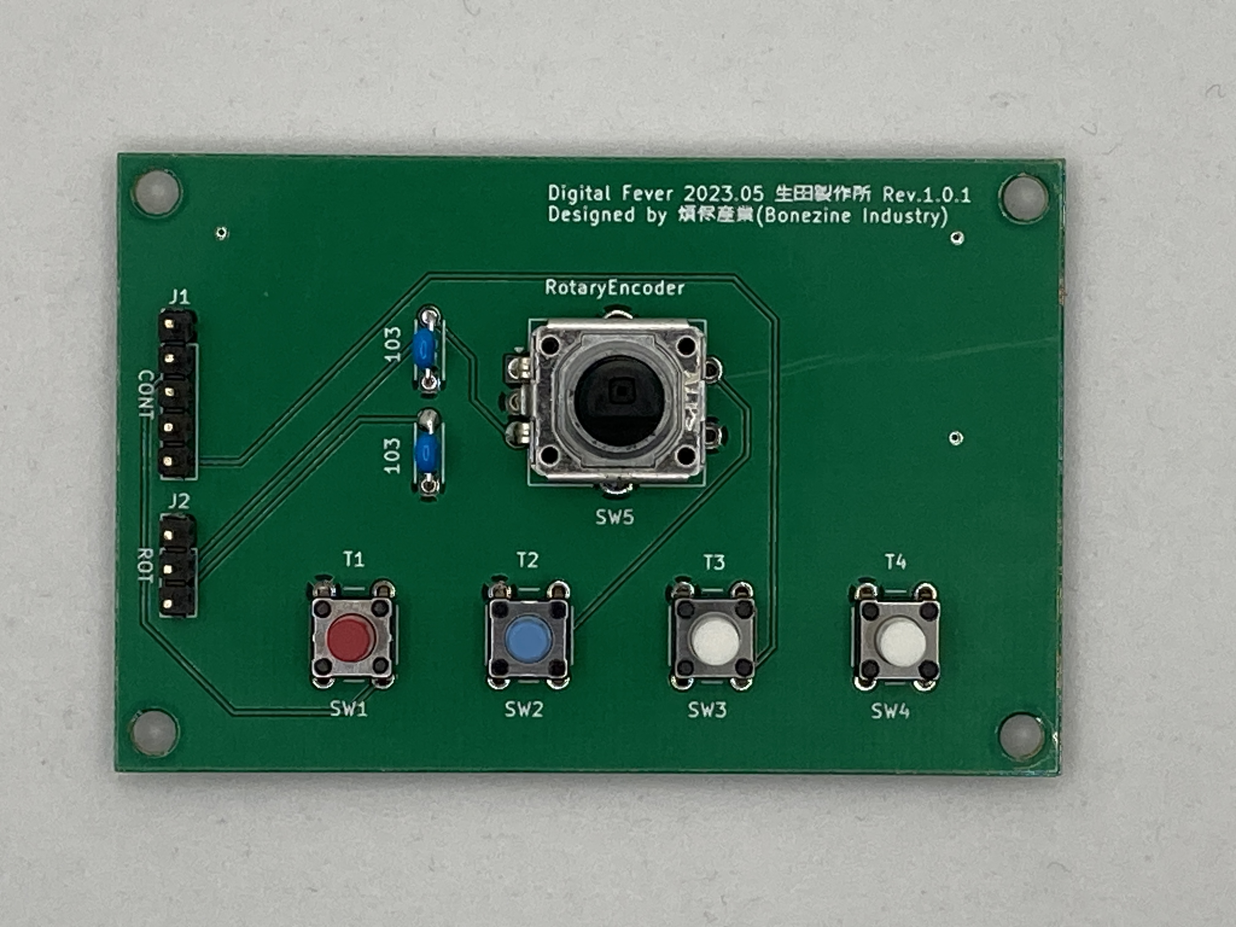以前、煩侭産業(Bonezine Industry)さんの“宇宙熱狂”「Digital Fever」キットを製作したのですが、不注意で壊してしまい煩侭産業さんの許可を得て専用プリント基板を製作しました。