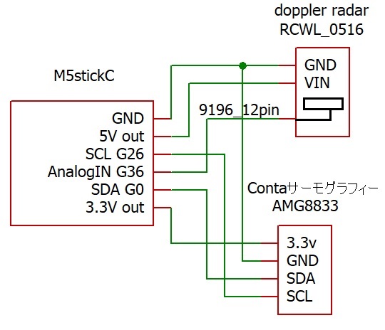 回路はM5stickCのGroveポートと2つのデバイスをつなぐだけでシンプルであるが注意点がいくつかある