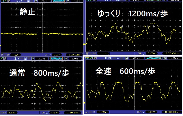 radarによる足踏み速度に応じ得られる出力波形例