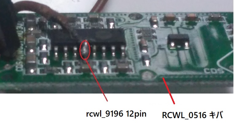 ①RCWL出力は基板OUTからとるのでなく、中のIC(rcwl_9196)12pinからdoppler波形をとる。