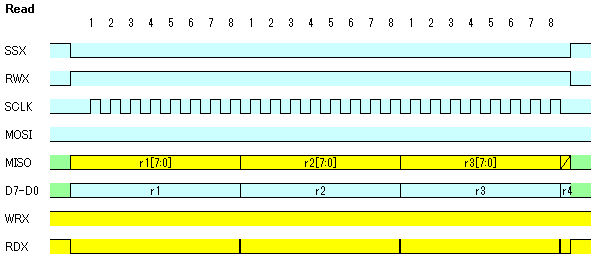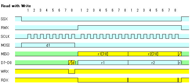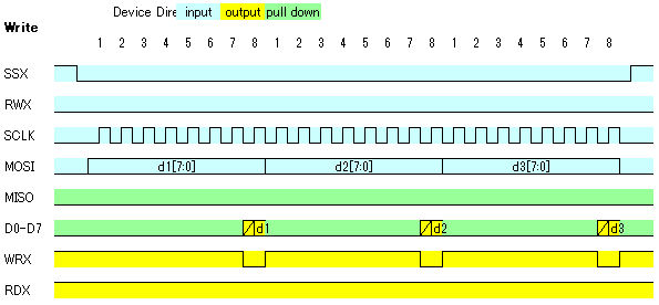 まず、SPIフォーマットと8bit BUSフォーマットの間の基本的なタイミングチャートを検討しました。