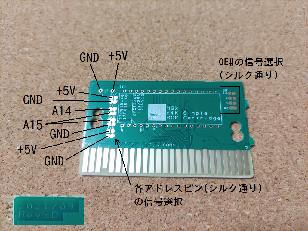 ROMカートリッジ用の基板を用い、RAM拡張カートリッジを作成することができた。