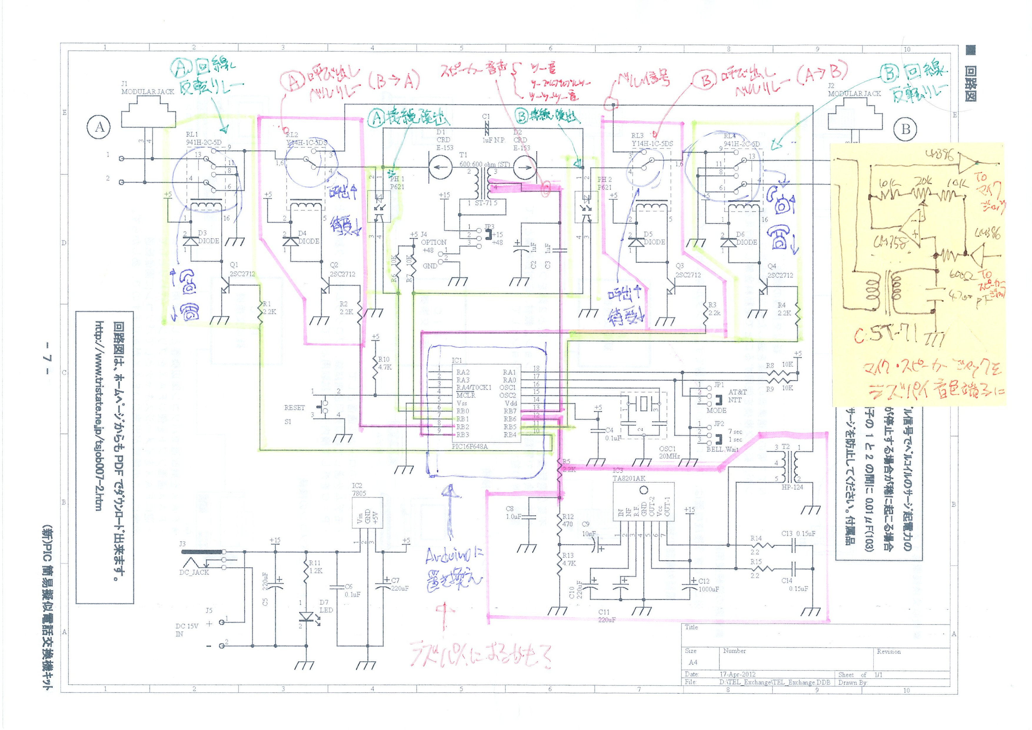 - トライステート製の「PIC疑似電話交換機キット」を使用した旨。