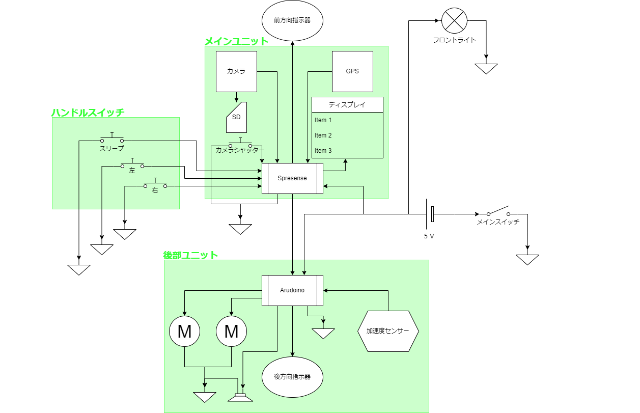- スイッチで操作ではなくSpresenseでフロントライトや後部ユニットの電源制御がしたい