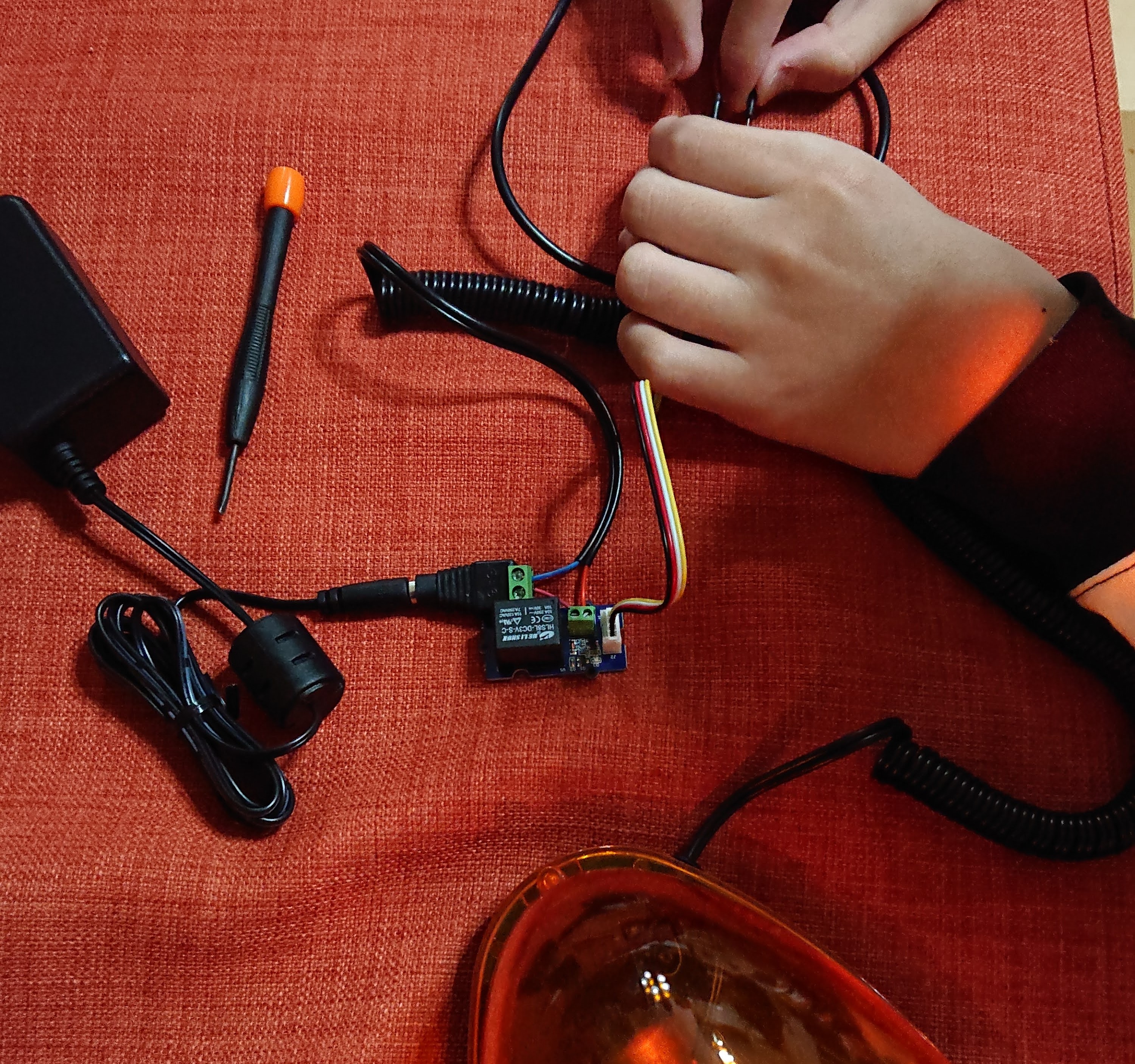 インターホンが鳴ったことが視覚的にわかるようパトランプが光るものを作りました。