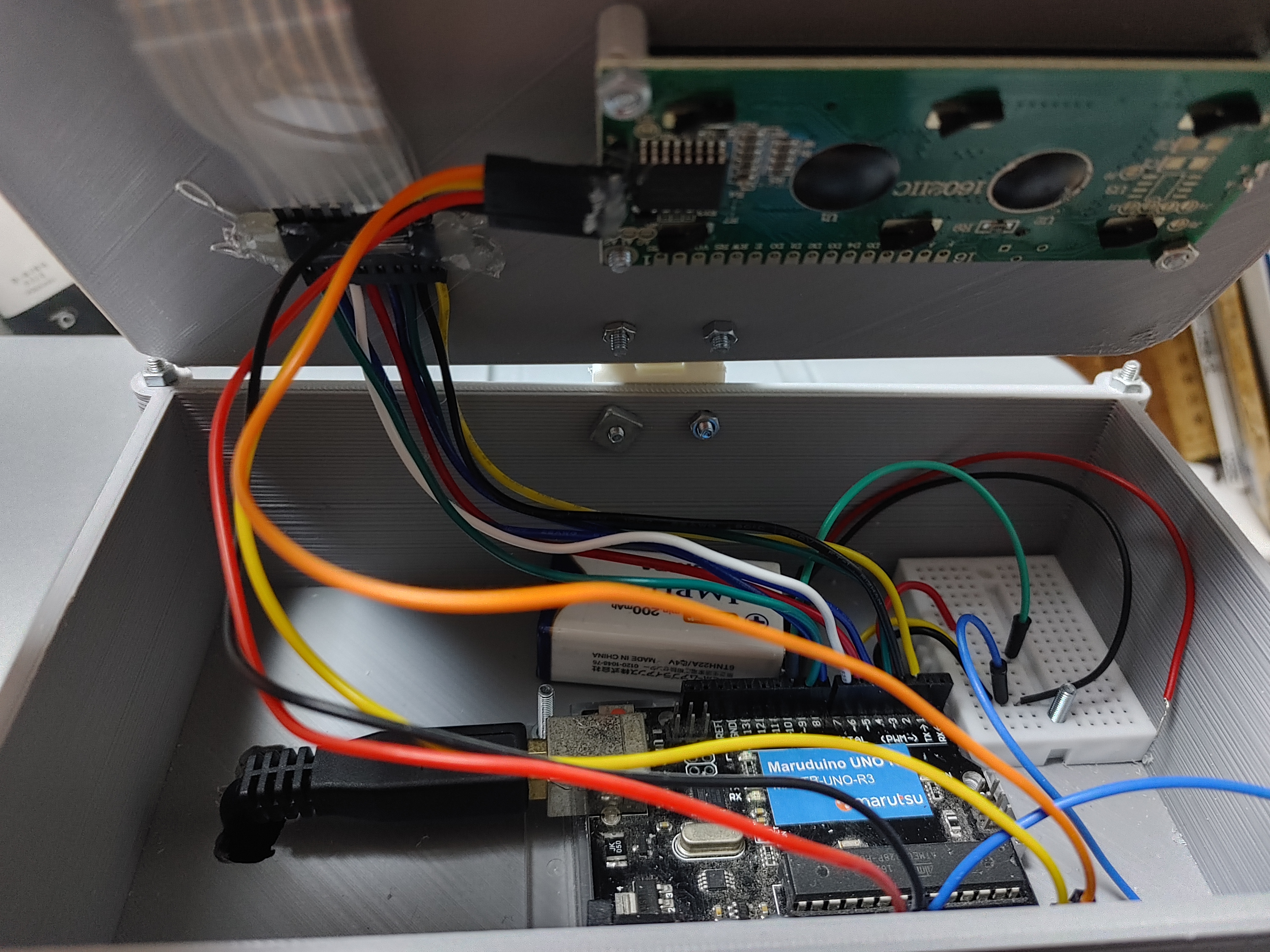 ①ホームセンターにあるコンテナボックスに、arduino LCDディスプレイ キーパッド サーボモータを装着