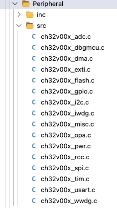 PIC開発でMCCを使うとペリフェラルを選ぶとそれに関連するソースがプロジェクトに取り込まれる、という方法だったが、MRS2の場合はPeripheralフォルダ内に全部用意されている。メインから#includeして使うんだろうな。