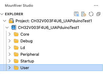 諦めてUIAPduinoをMCH-LinkEで接続してプロジェクト作成を行なってみる。UIAPduinoはCH32V003F4U6っぽいのでこれを指定した。