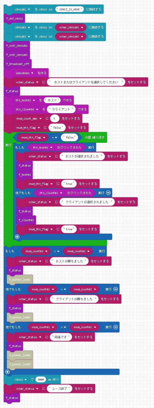 ホストによるレース開始通知はobniz ioポートを使用(*3)。
