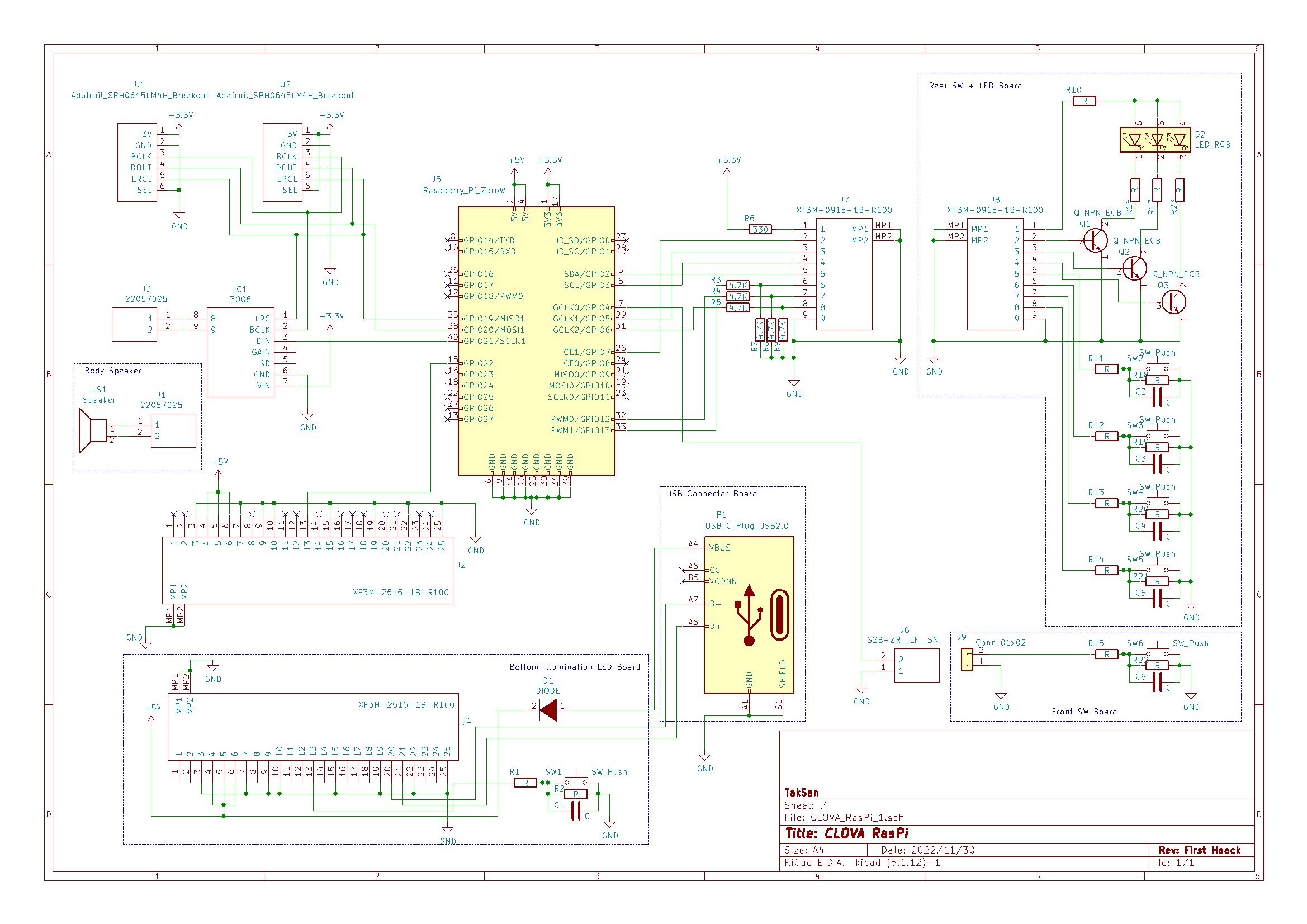 また、専用基板での組み立て手順を新たな記事として作成しました。こちら⇒を参照ください。ラズパイ化CLOVA-パート2(専用基板編)