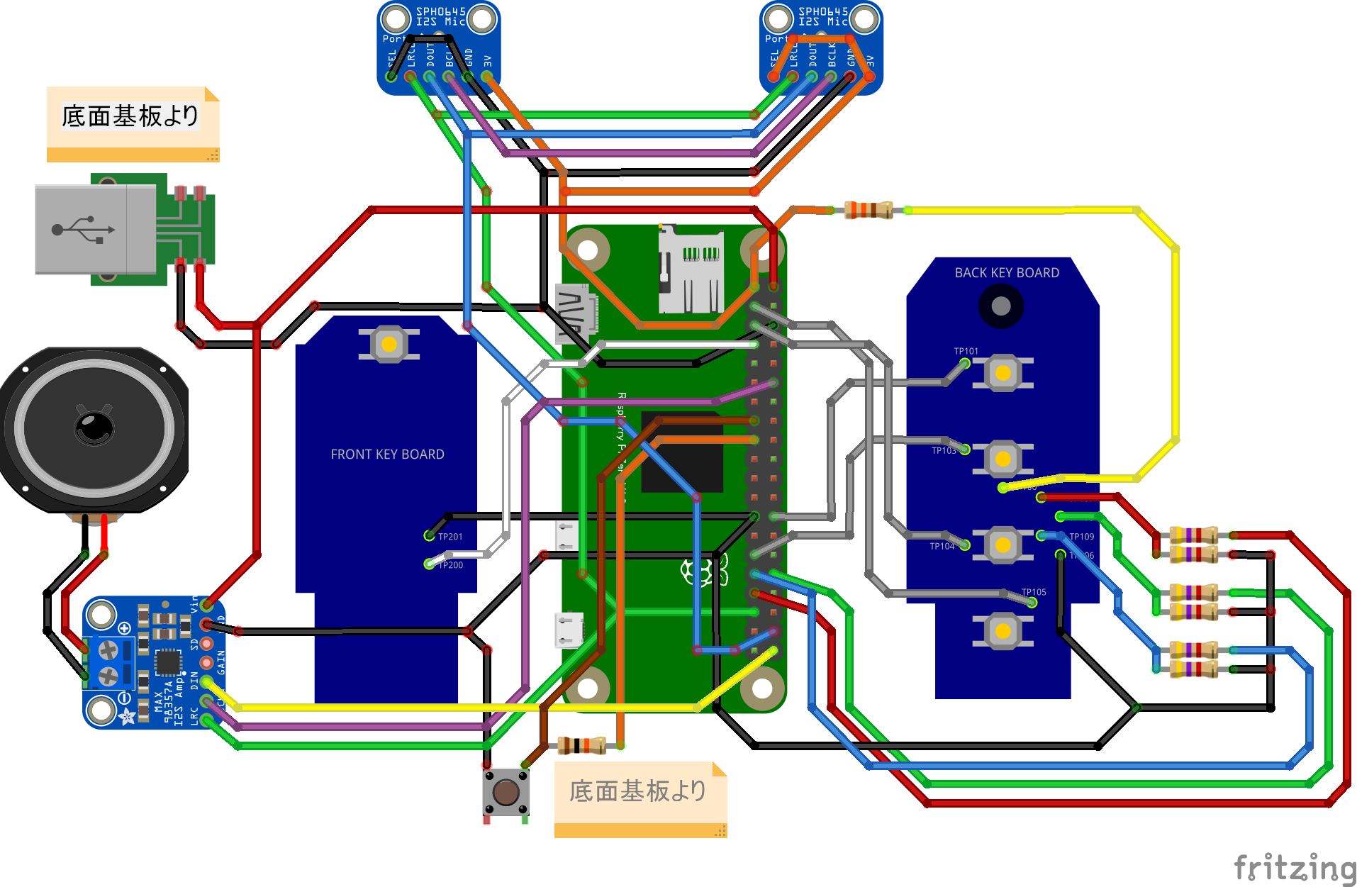 というわけで、この基板の中に CPU と直結して使われている音声制御用のチップが使えませんので、音声関連の回路はラズパイに外付けする必要がありそうです。